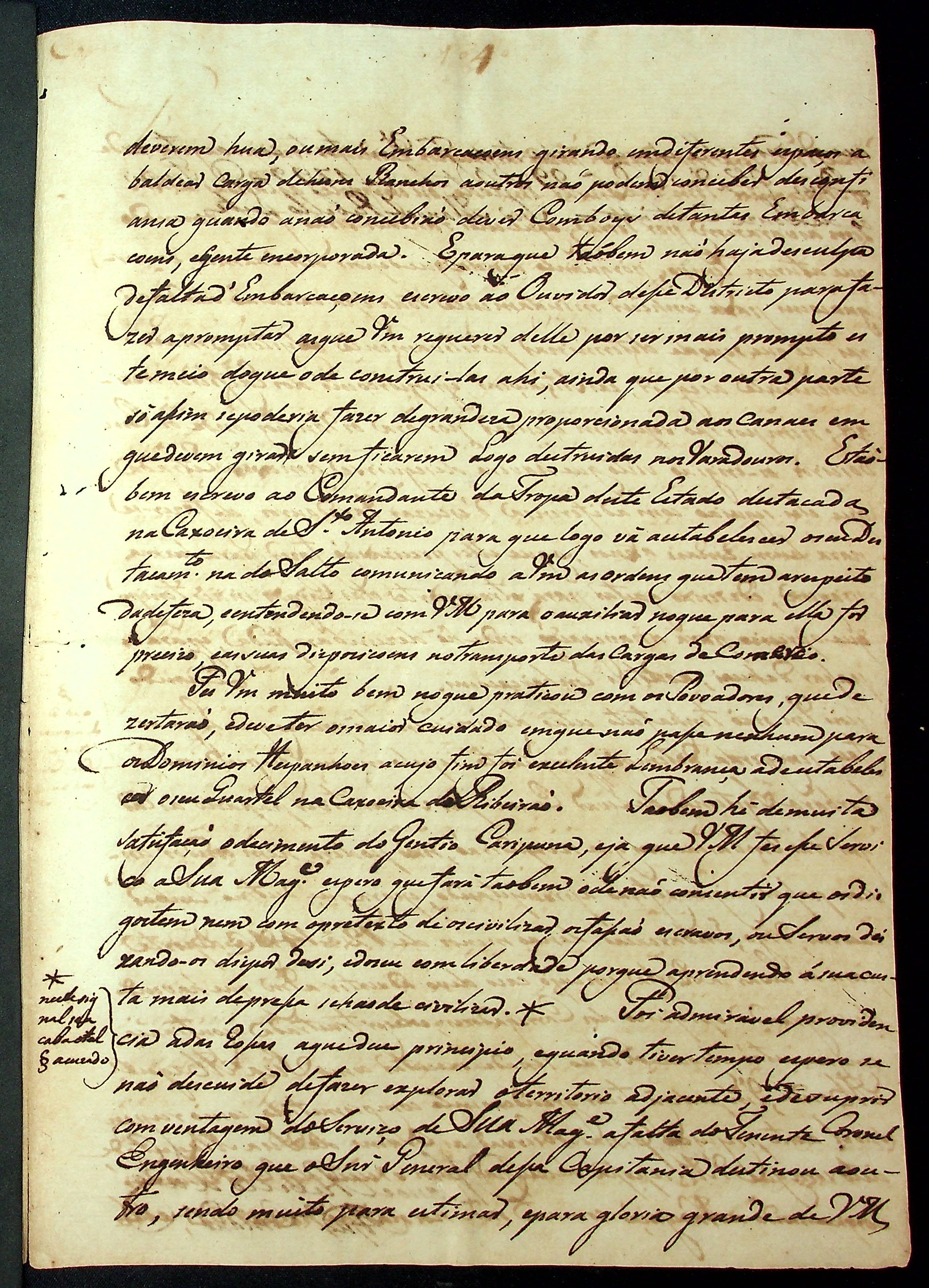 CARTA (cópia) de Francisco de Souza Coutinho ao Ajudante e Comandante do [Quartel da Cachoeira do Ribeirão] Manoel Rabello Leite.