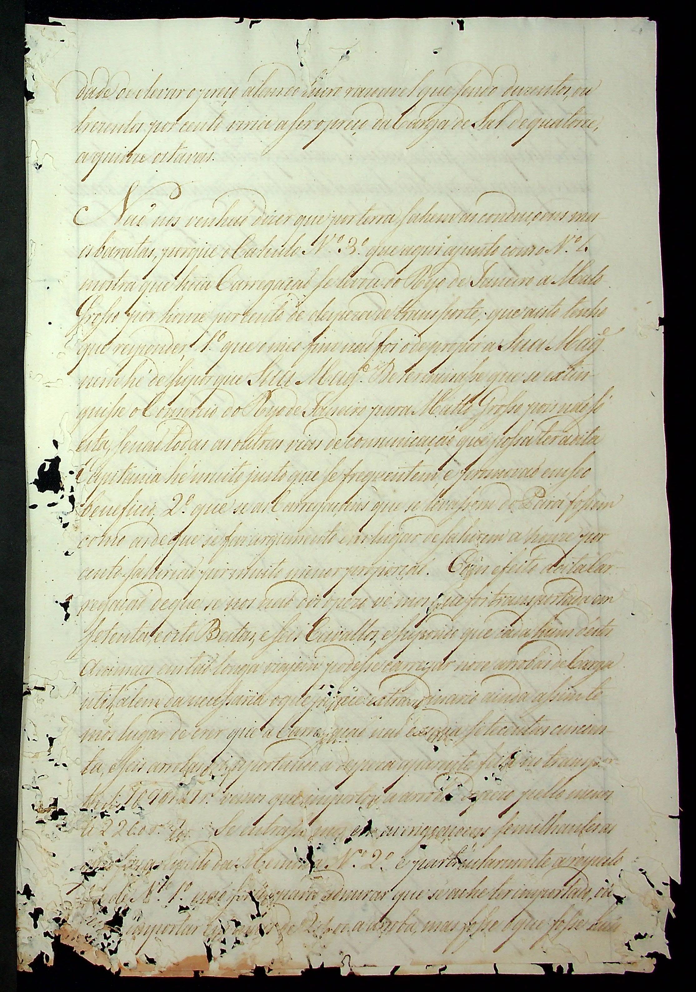CARTA (incompleta) de Francisco de Souza Coutinho [ao Governador e Capitão-General da Capitania de Mato Grosso Caetano Pinto de Miranda e Montenegro].