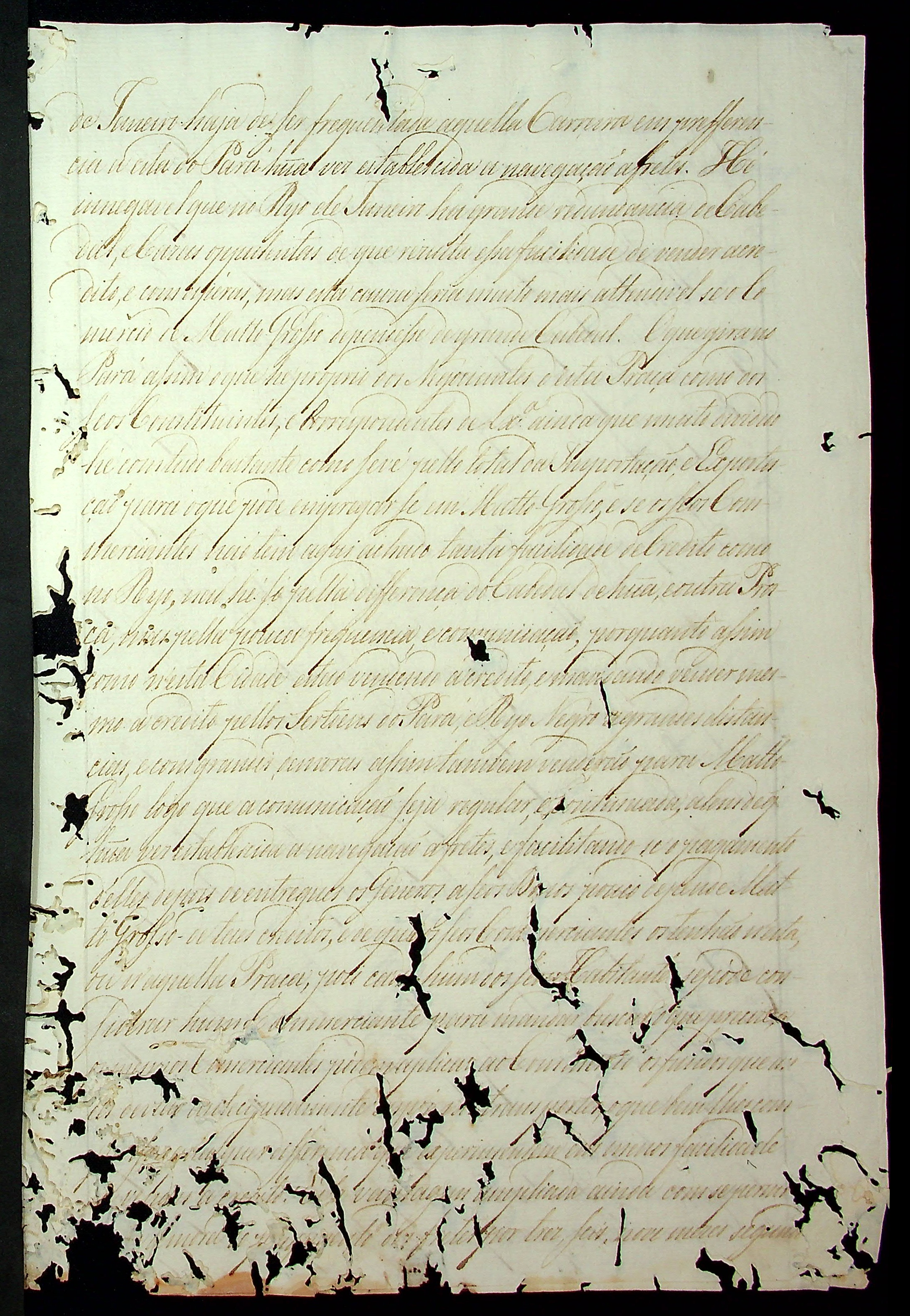 CARTA (incompleta) de Francisco de Souza Coutinho [ao Governador e Capitão-General da Capitania de Mato Grosso Caetano Pinto de Miranda e Montenegro].