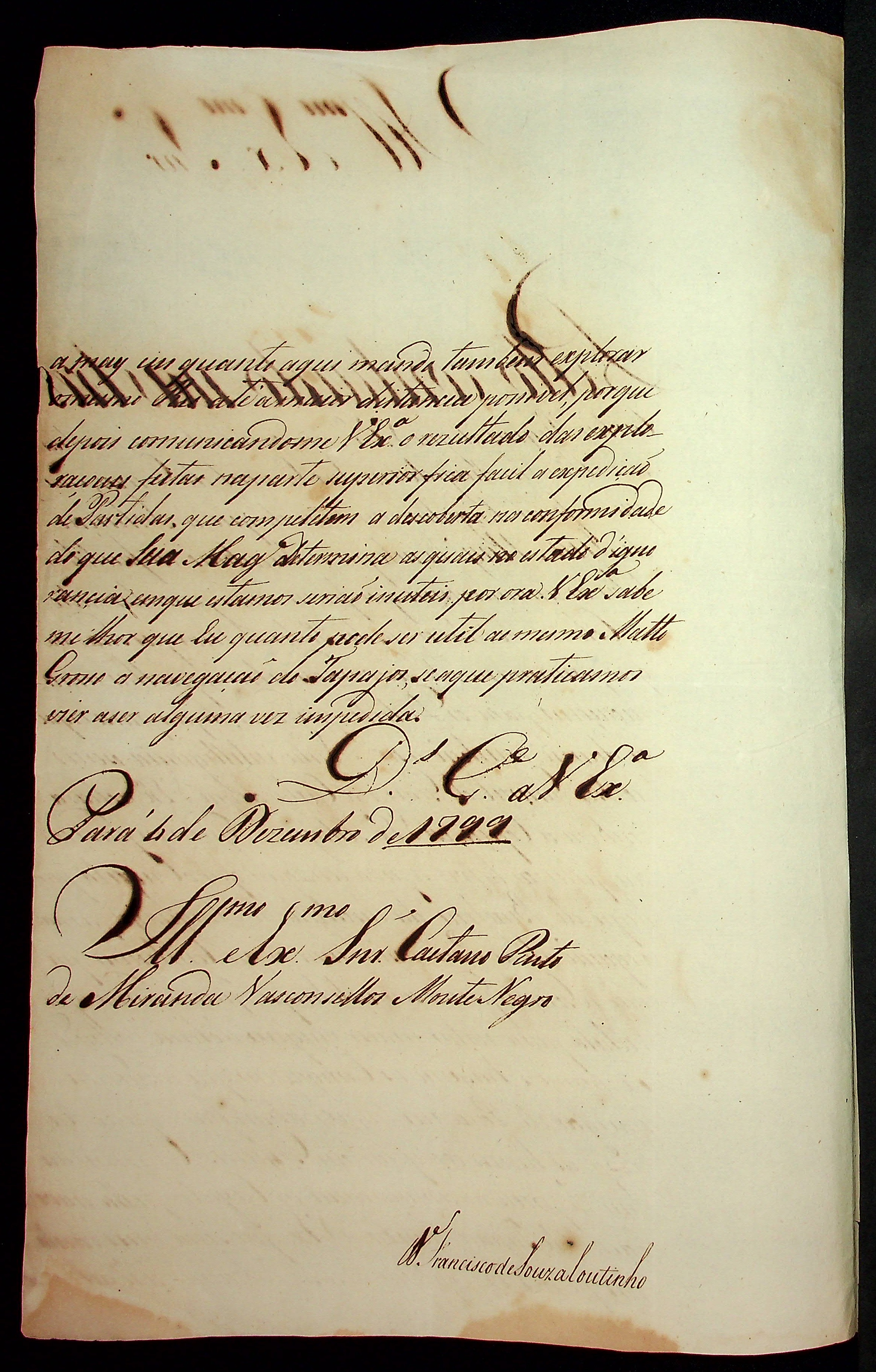CARTA de Francisco de Souza Coutinho ao [Governador e Capitão-General da Capitania de Mato Grosso] Caetano Pinto de Miranda e Montenegro.