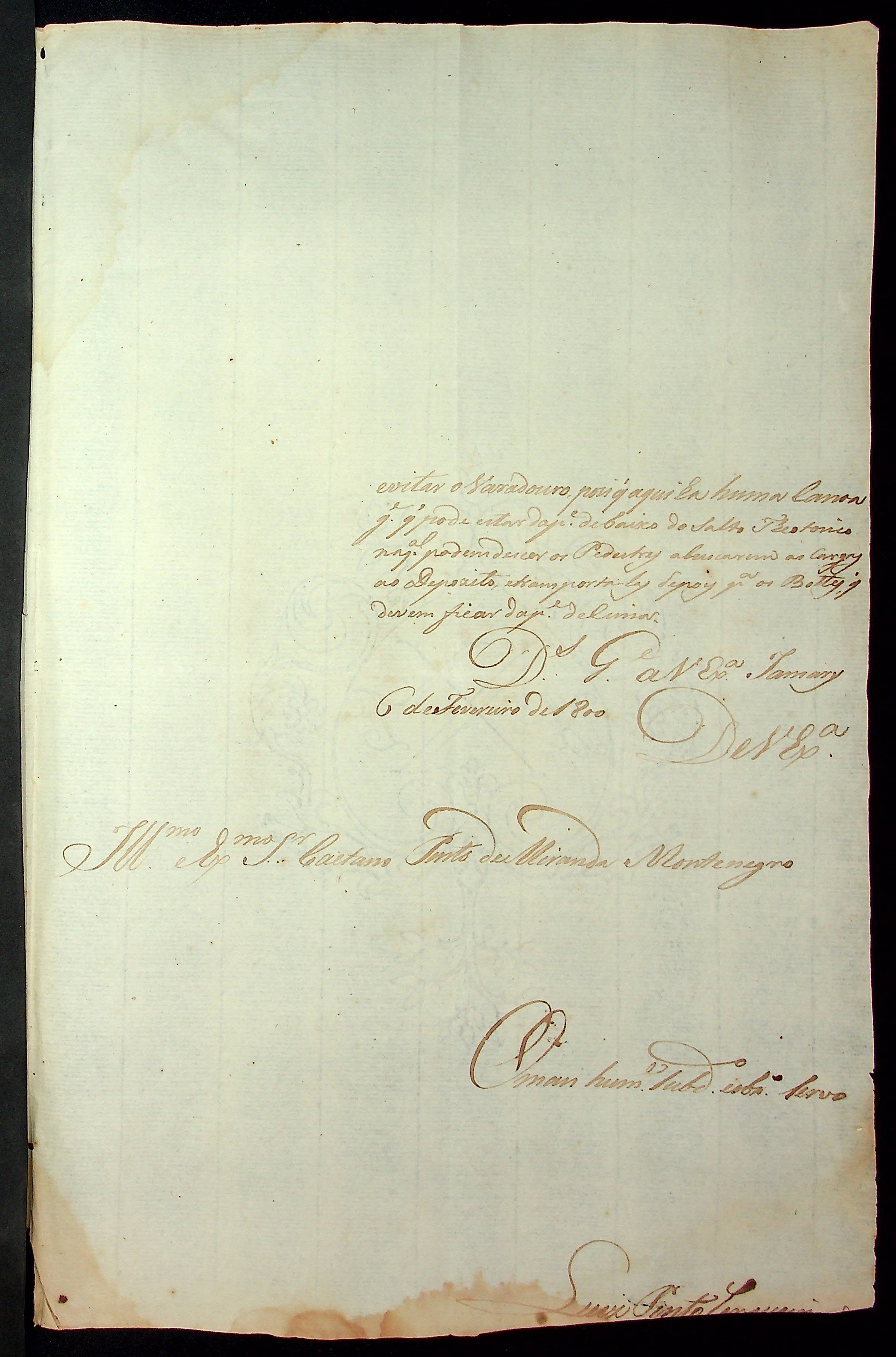 CARTA do [Ouvidor] Luís Pinto de Cerqueira ao [Governador e Capitão General da Capitania de Mato Grosso] Caetano Pinto de Miranda Montenegro.