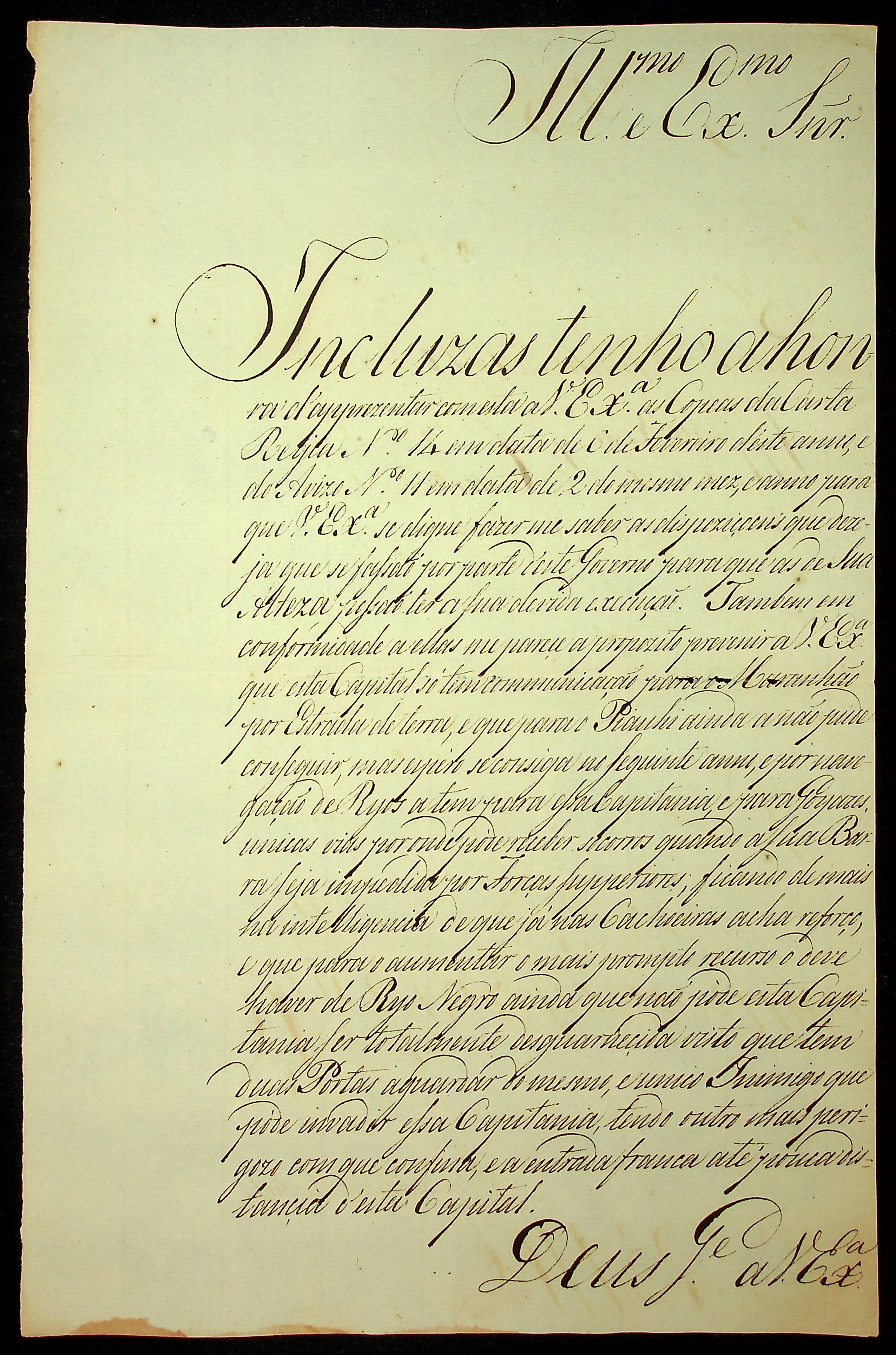 CARTA de Francisco de Souza Coutinho ao [Governador e Capitão General da Capitania de Mato Grosso] Caetano Pinto de Miranda Montenegro.