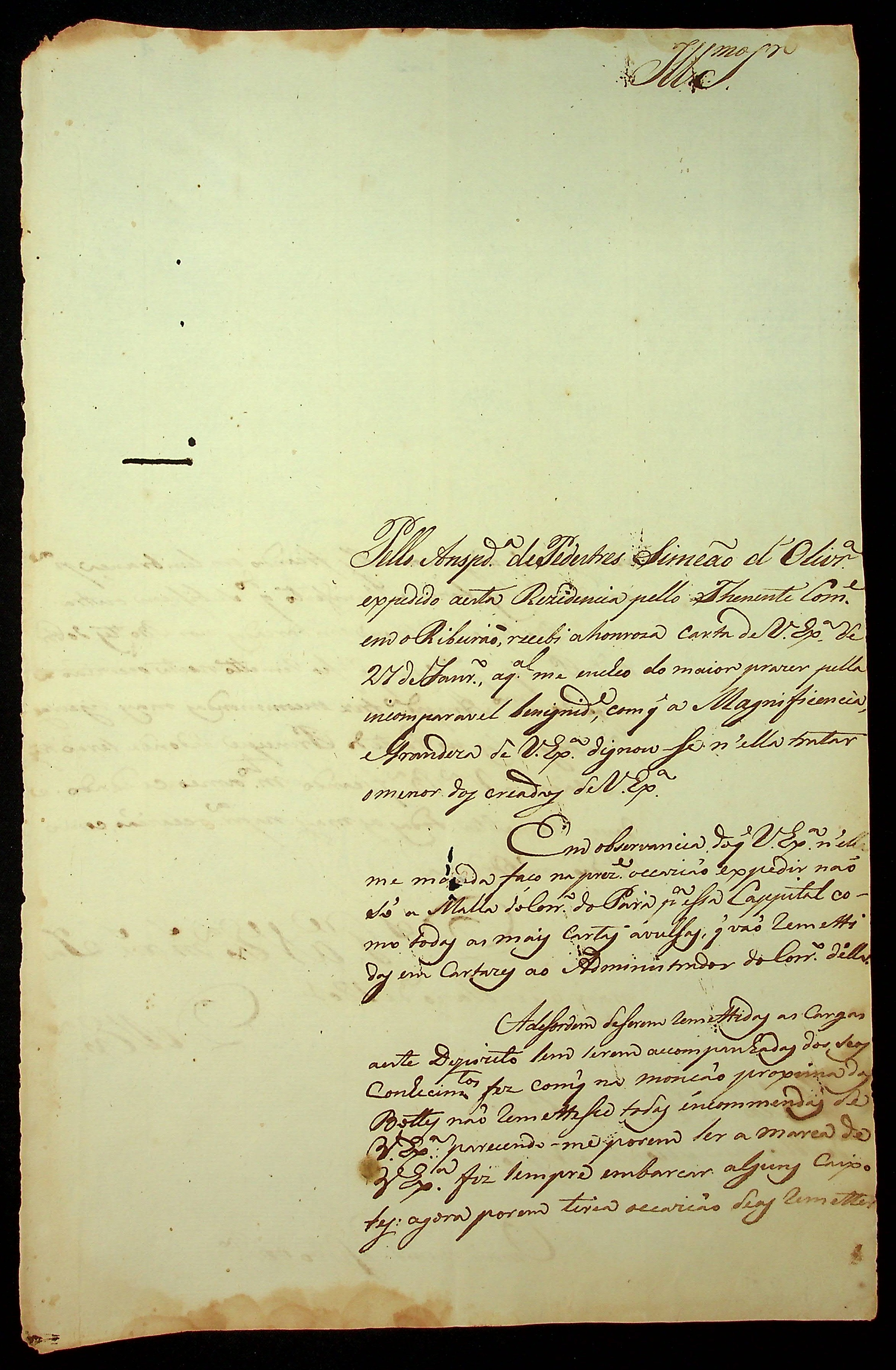 CARTA do [Ouvidor] Luís Pinto [Cerqueira ao [Governador e Capitão General da Capitania de Mato Grosso] Caetano Pinto de Miranda Montenegro.]