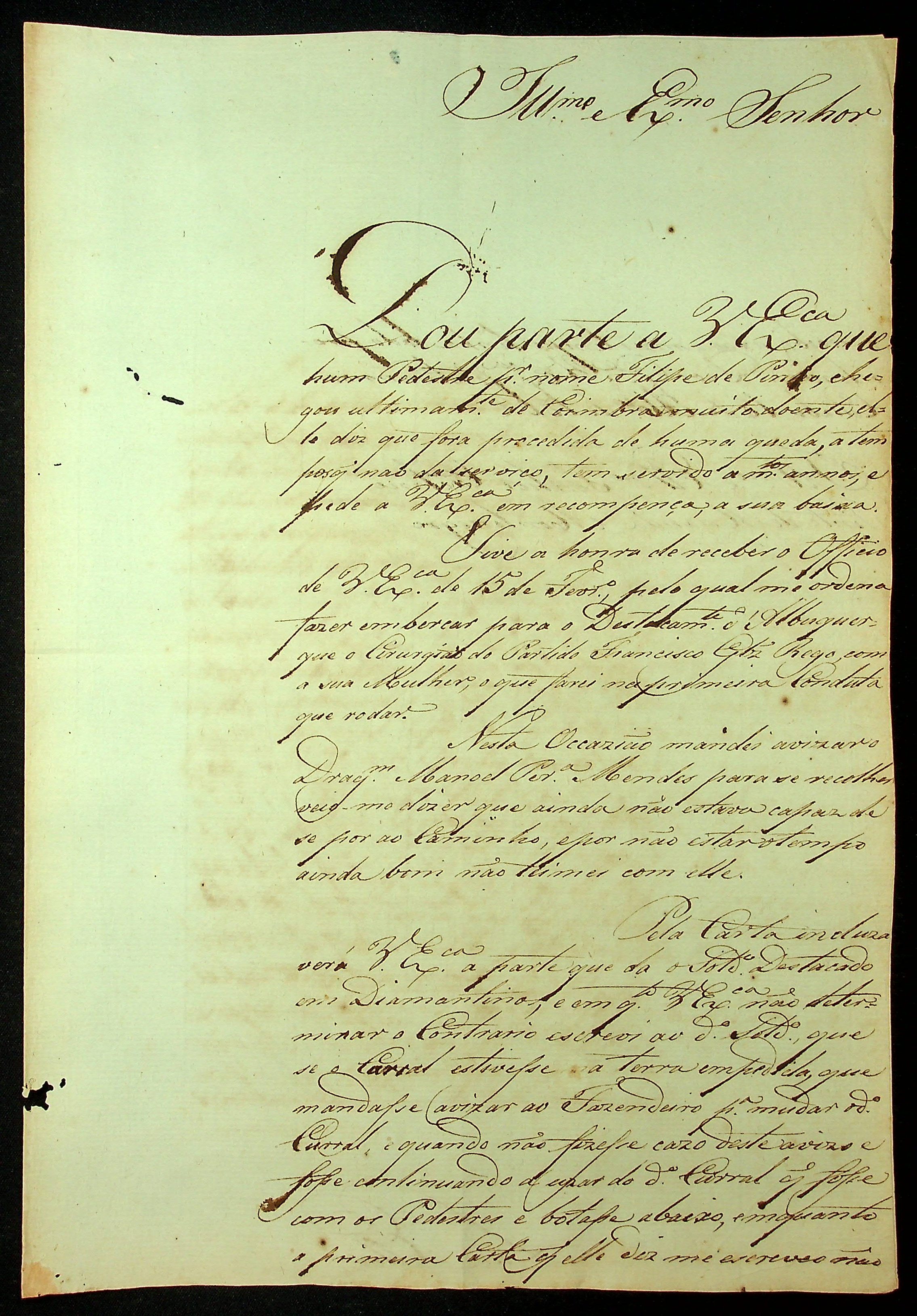 CARTA de Luís Pereira ao [Governador e Capitão General da Capitania de Mato Grosso] Caetano Pinto de Miranda Montenegro.
