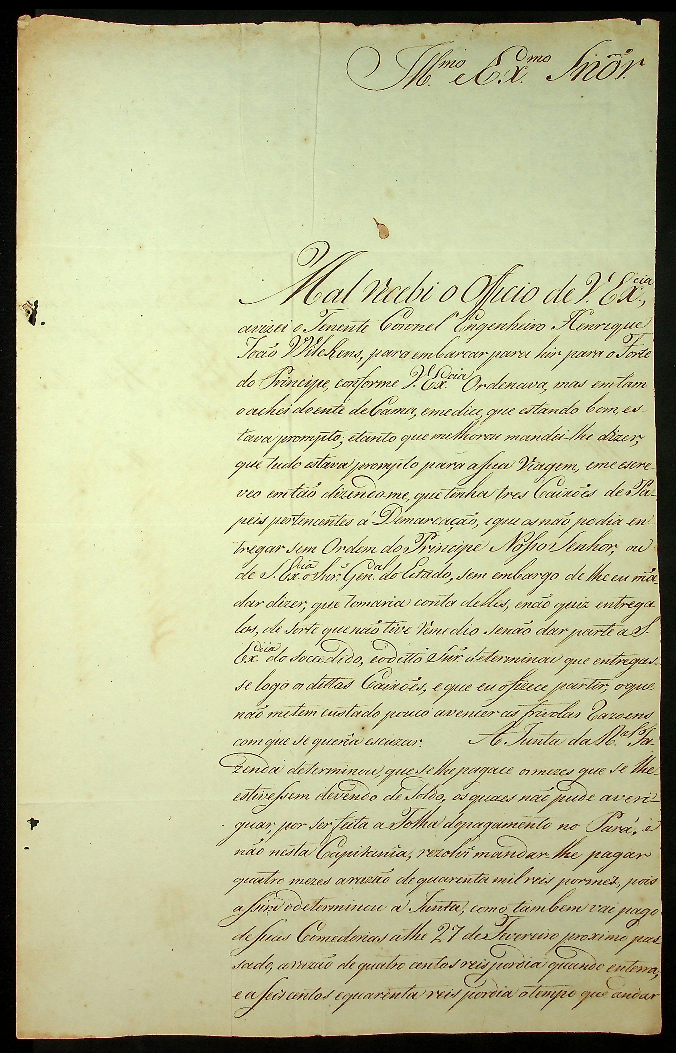 CARTA de José Antônio Salgado ao [Governador e Capitão General da Capitania de Mato Grosso] Caetano Pinto de Miranda Montenegro.