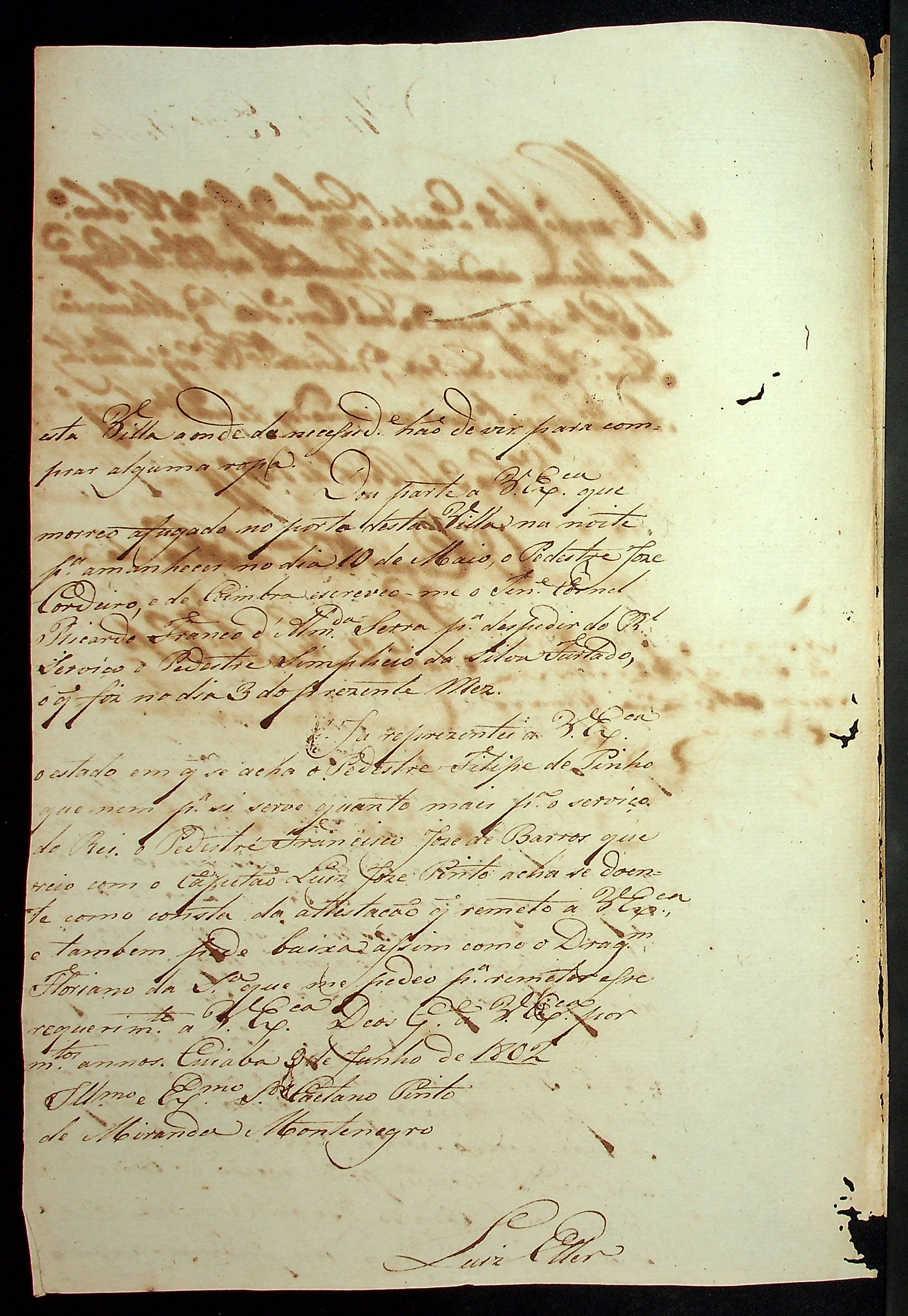 CARTA de Luiz Pereira ao [Governador e Capitão General da Capitania de Mato Grosso] Caetano Pinto de Miranda Montenegro.