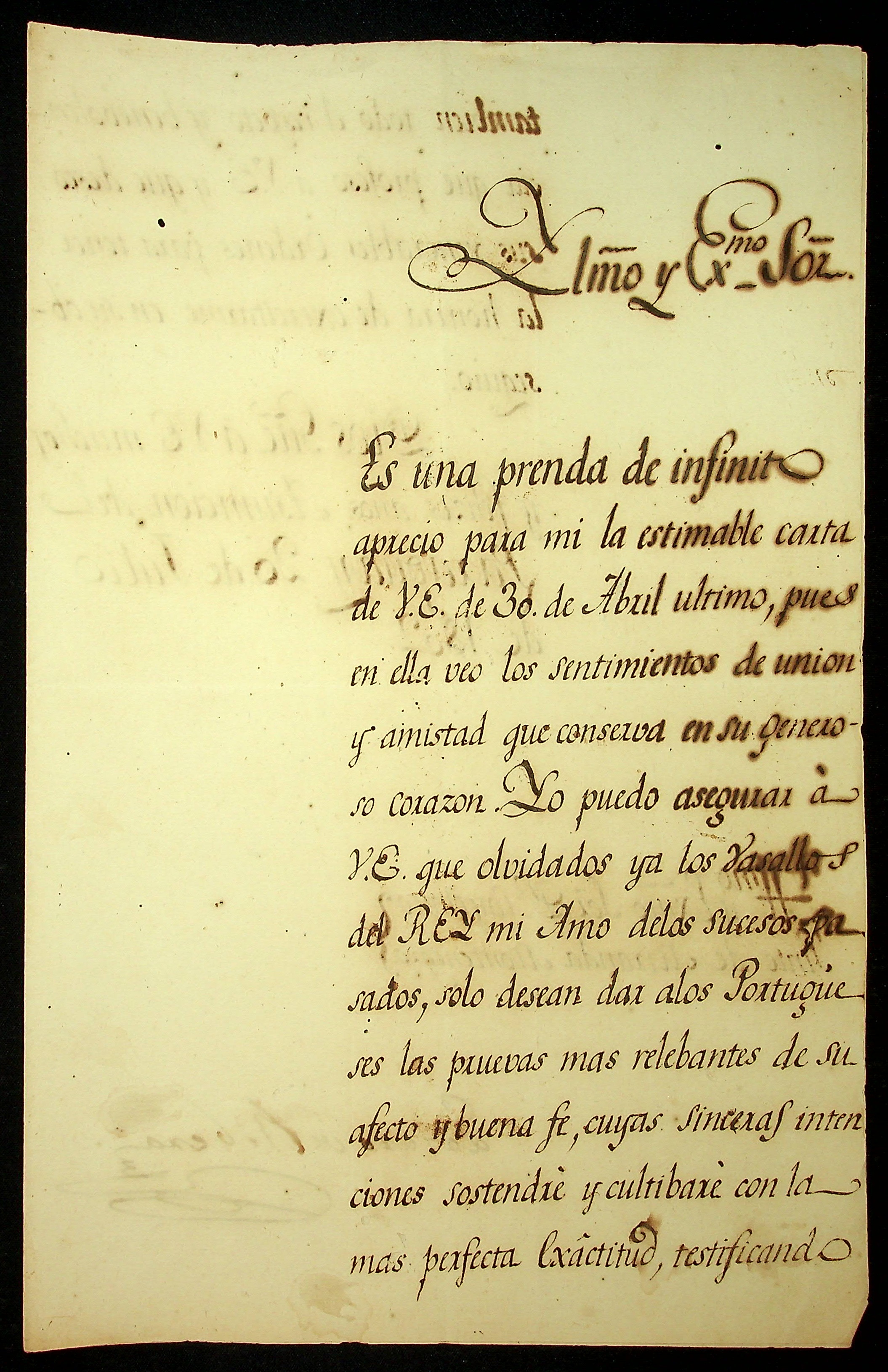 CARTA do [Governador do Paraguai] Lazaro de Ribera ao [Governador e Capitão General da Capitania de Mato Grosso] Caetano Pinto de Miranda Montenegro.