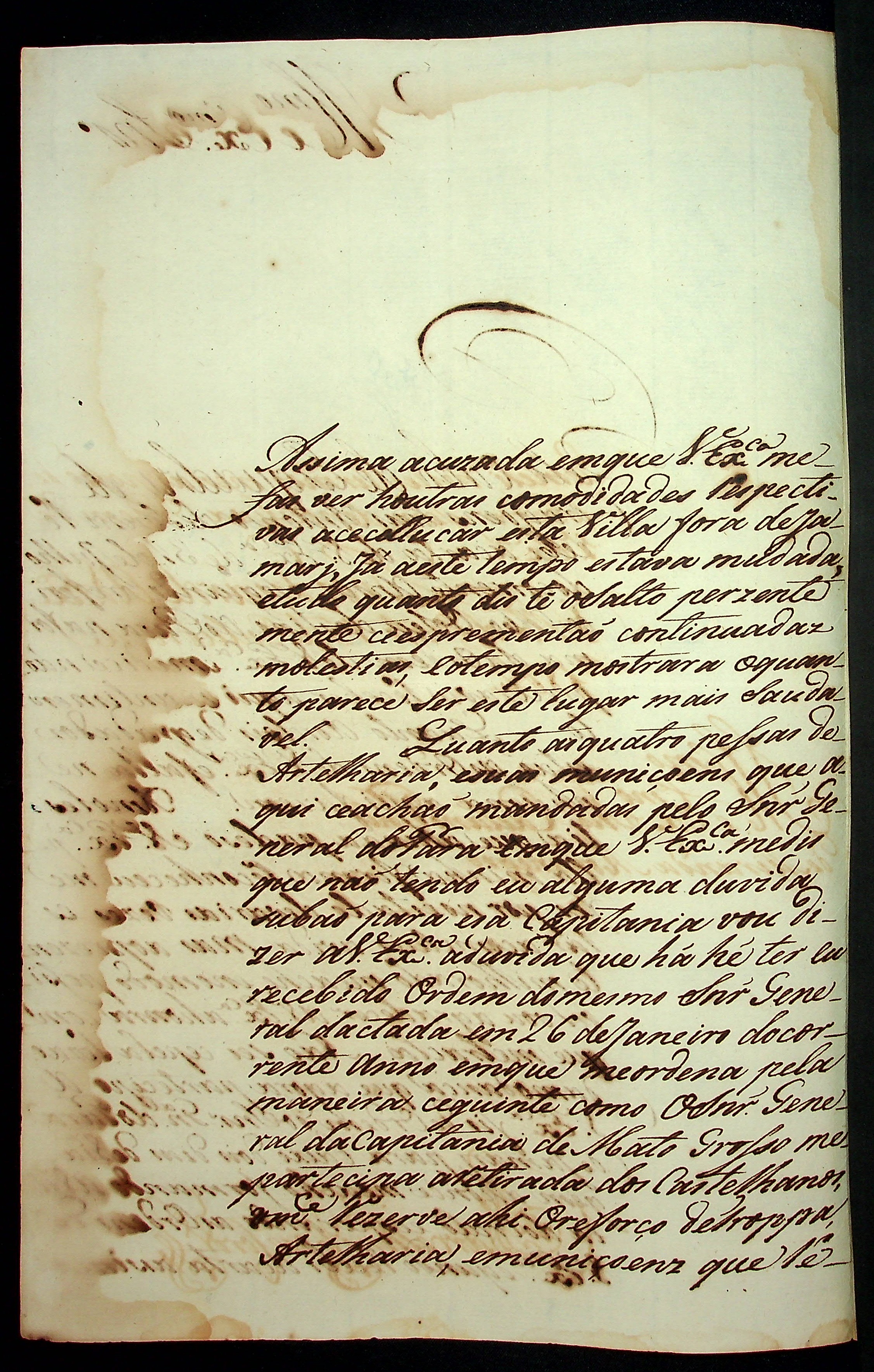 CARTA do [Comandante do Destacamento da Vila de São José do Crato] Marcelino José Cordeiro ao [Governador e Capitão General da Capitania de Mato Grosso] Caetano Pinto de Miranda Montenegro.