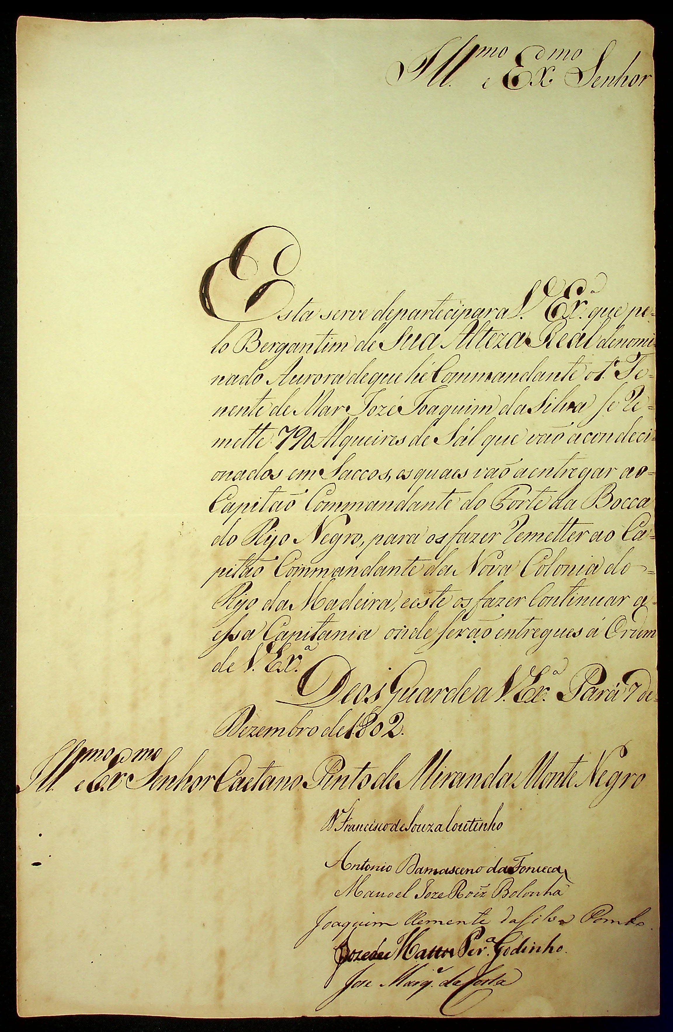 CARTA do [Governador e Capitão-General da Capitania do Grão Pará e Maranhão] Francisco de Sousa Coutinho e Junta ao [Governador e Capitão General da Capitania de Mato Grosso] Caetano Pinto de Miranda Montenegro.