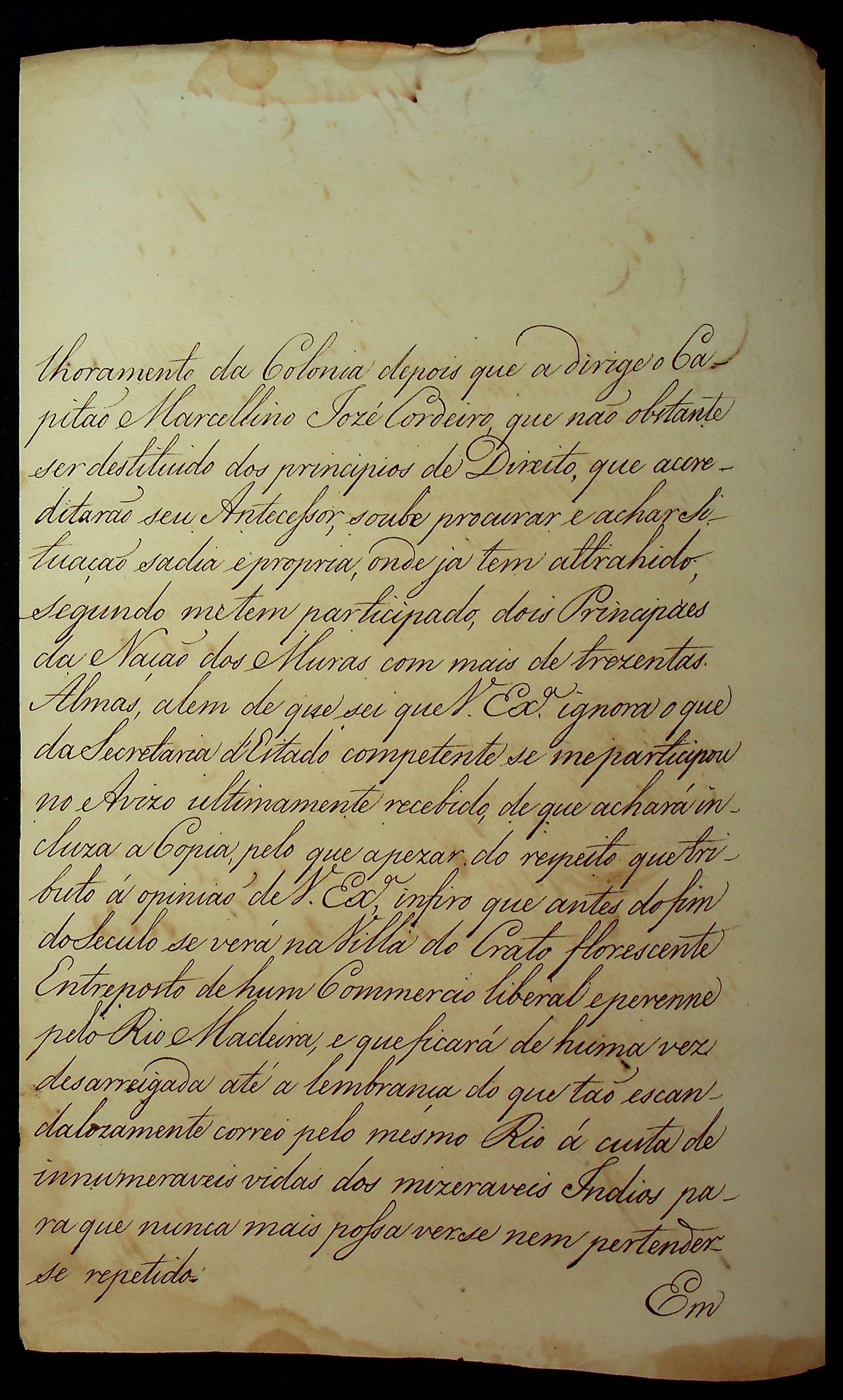 CARTA do [Governador e Capitão-General da Capitania do Grão Pará e Maranhão] Francisco de Souza Coutinho ao [Governador e Capitão General da Capitania de Mato Grosso] Caetano Pinto de Miranda Montenegro.