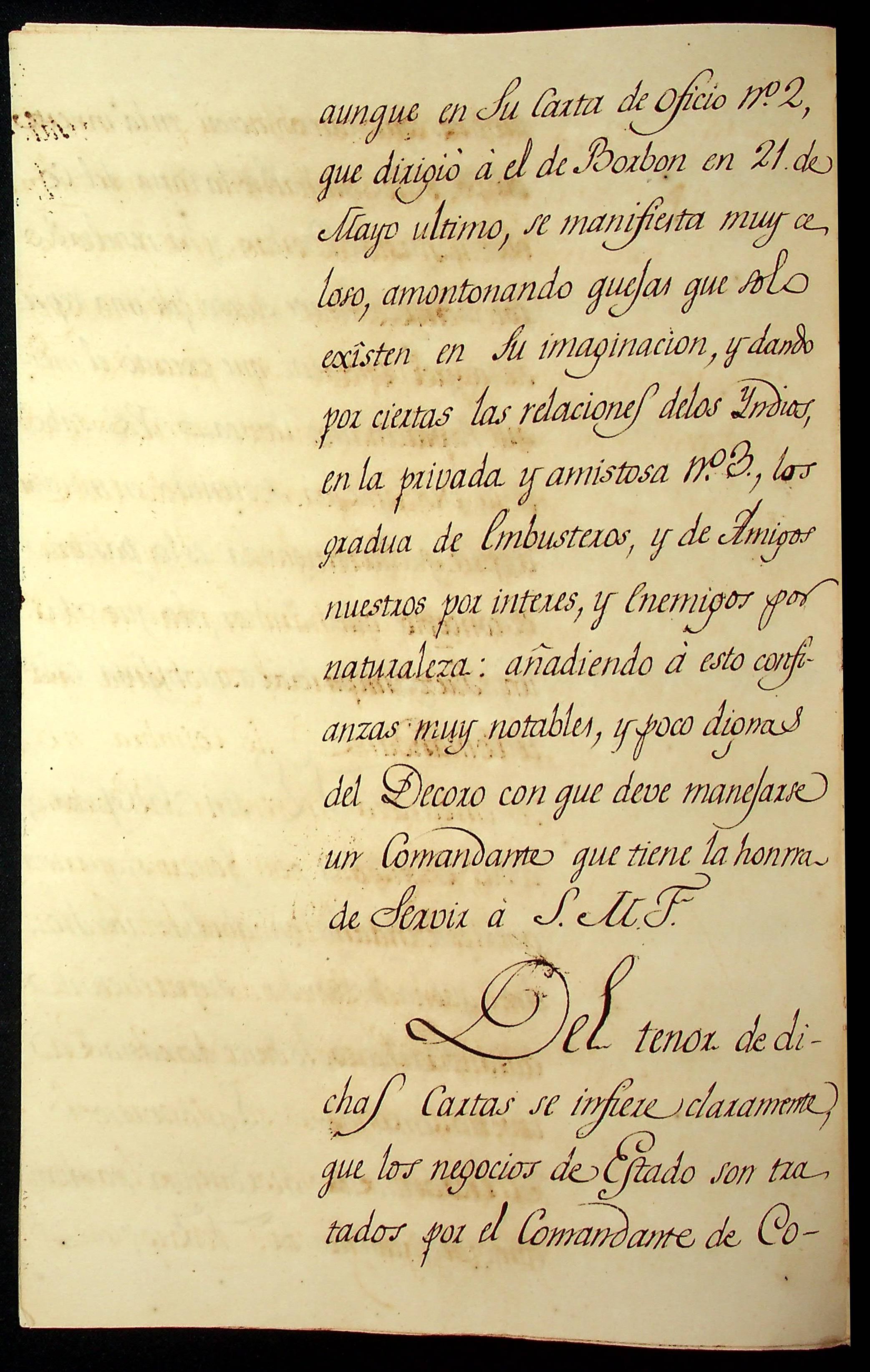 CARTA de Lázaro de Ribera ao [Governador e Capitão General da Capitania de Mato Grosso] Caetano Pinto de Miranda Montenegro.