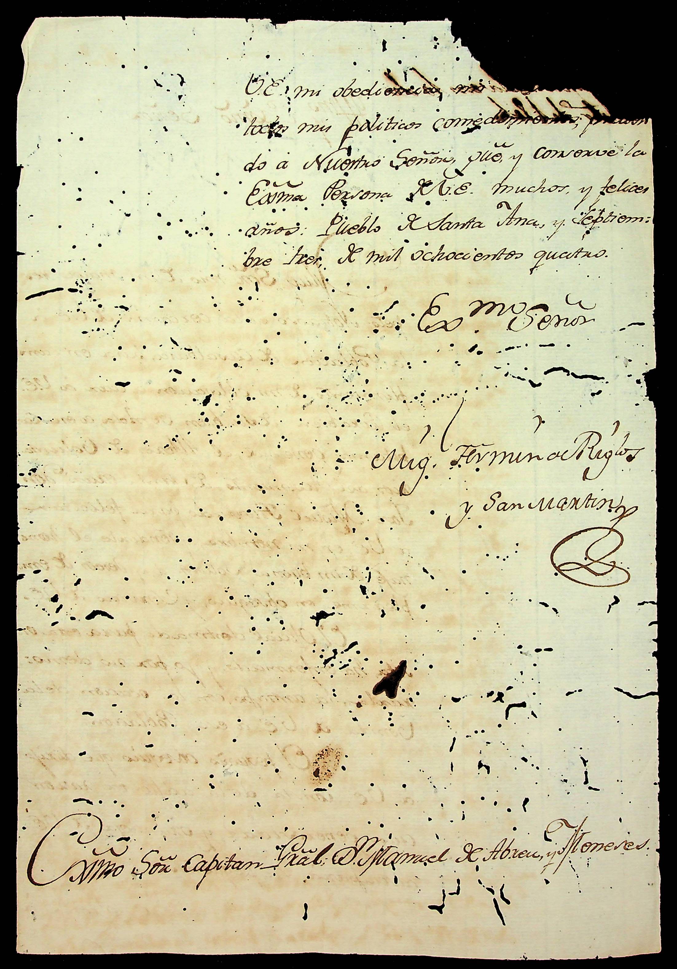 CARTA de Firmino Riglos y San Martin ao Governador e Capitão-General da Capitania de Mato Grosso Manoel Carlos de Abreu e Meneses.