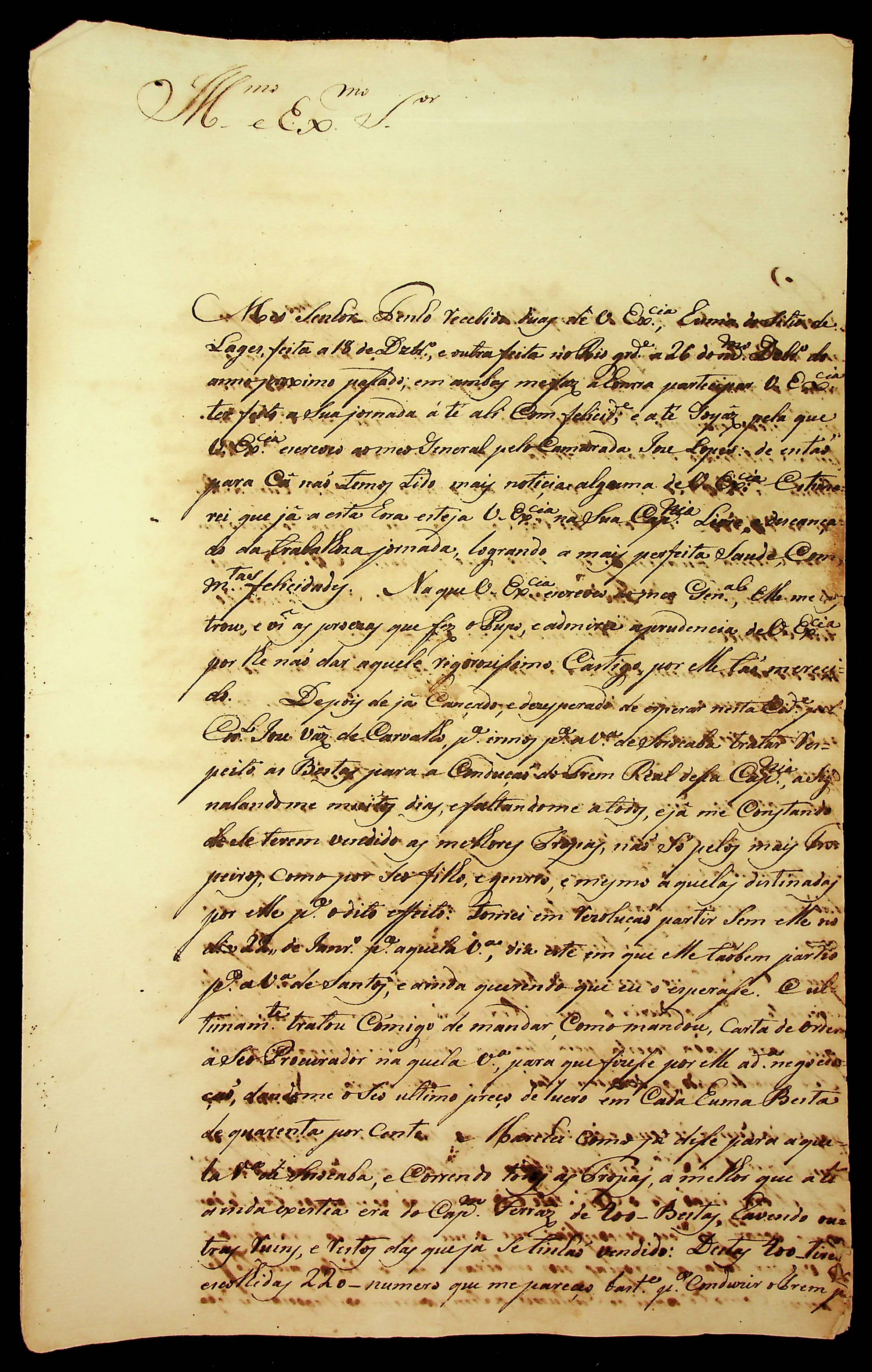 CARTA do Capitão José Joaquim Xavier de Toledo ao [Governador e Capitão-General da Capitania de Mato Grosso] Manoel Carlos de Abreu e Menezes.