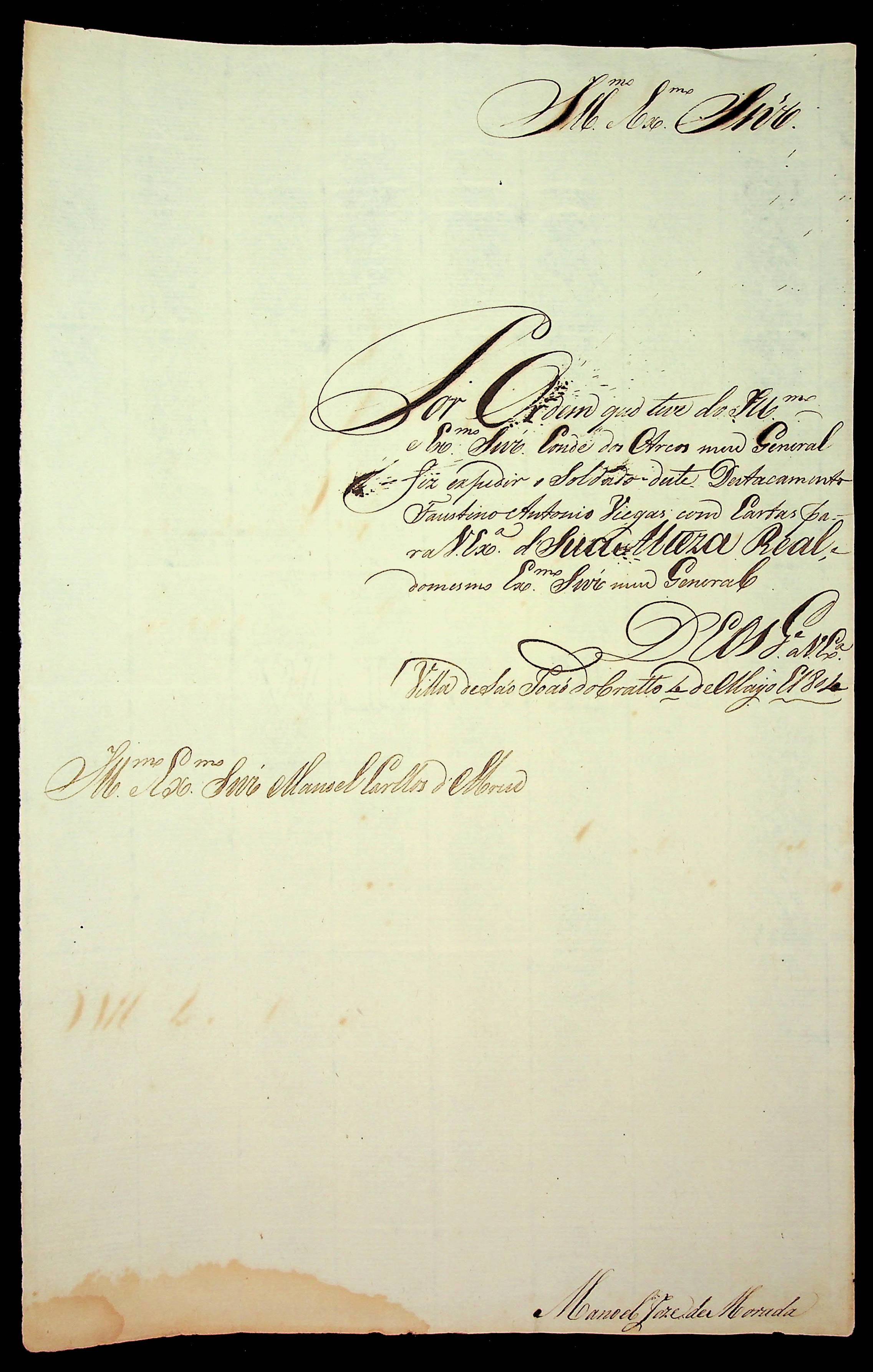 CARTA de Manoel José de Morada ao [Governador e Capitão-General da Capitania de Mato Grosso] Manoel Carlos de Abreu e Menezes.