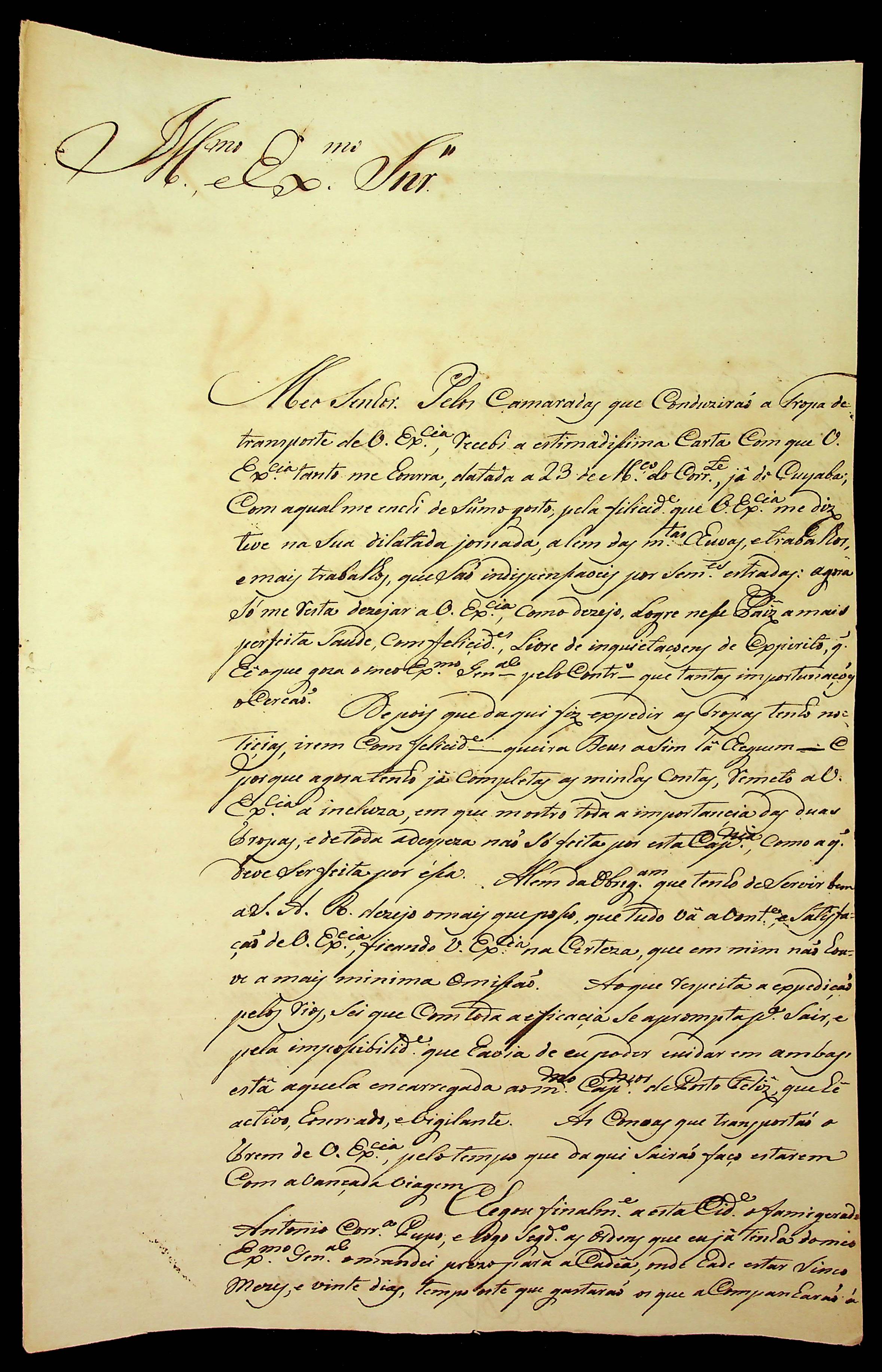 CARTA do [Sargento-Mor] José Joaquim Xavier de Toledo ao [Governador e Capitão-General da Capitania de Mato Grosso] Manoel Carlos de Abreu e Menezes.