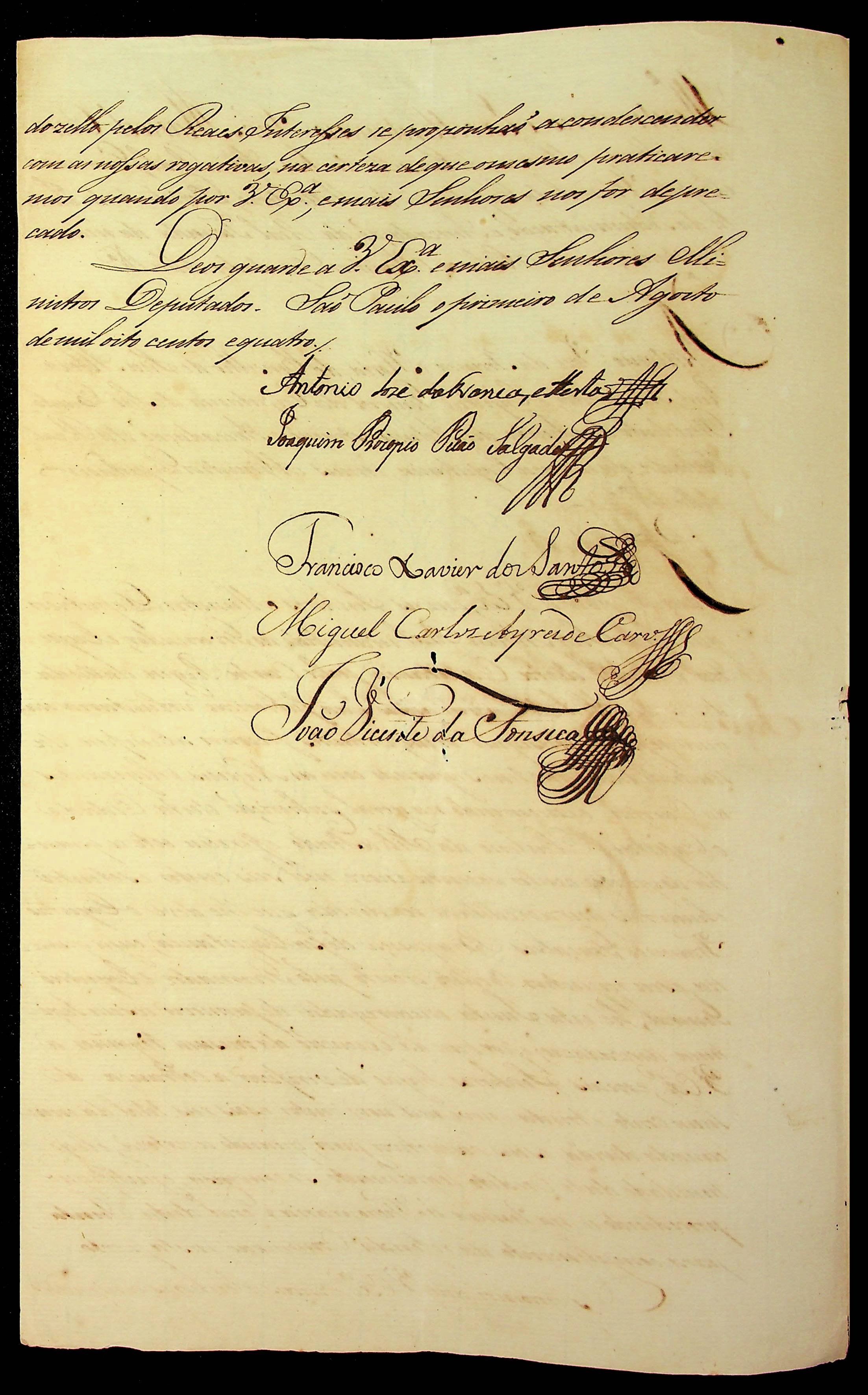 CARTA do Governador e Capitão-General da Capitania de São Paulo Antônio José da Franca e Horta e Ministros Deputados da Junta da Fazenda ao Governador e Capitão-General da Capitania de Mato Grosso Manoel Carlos de Abreu e Menezes.