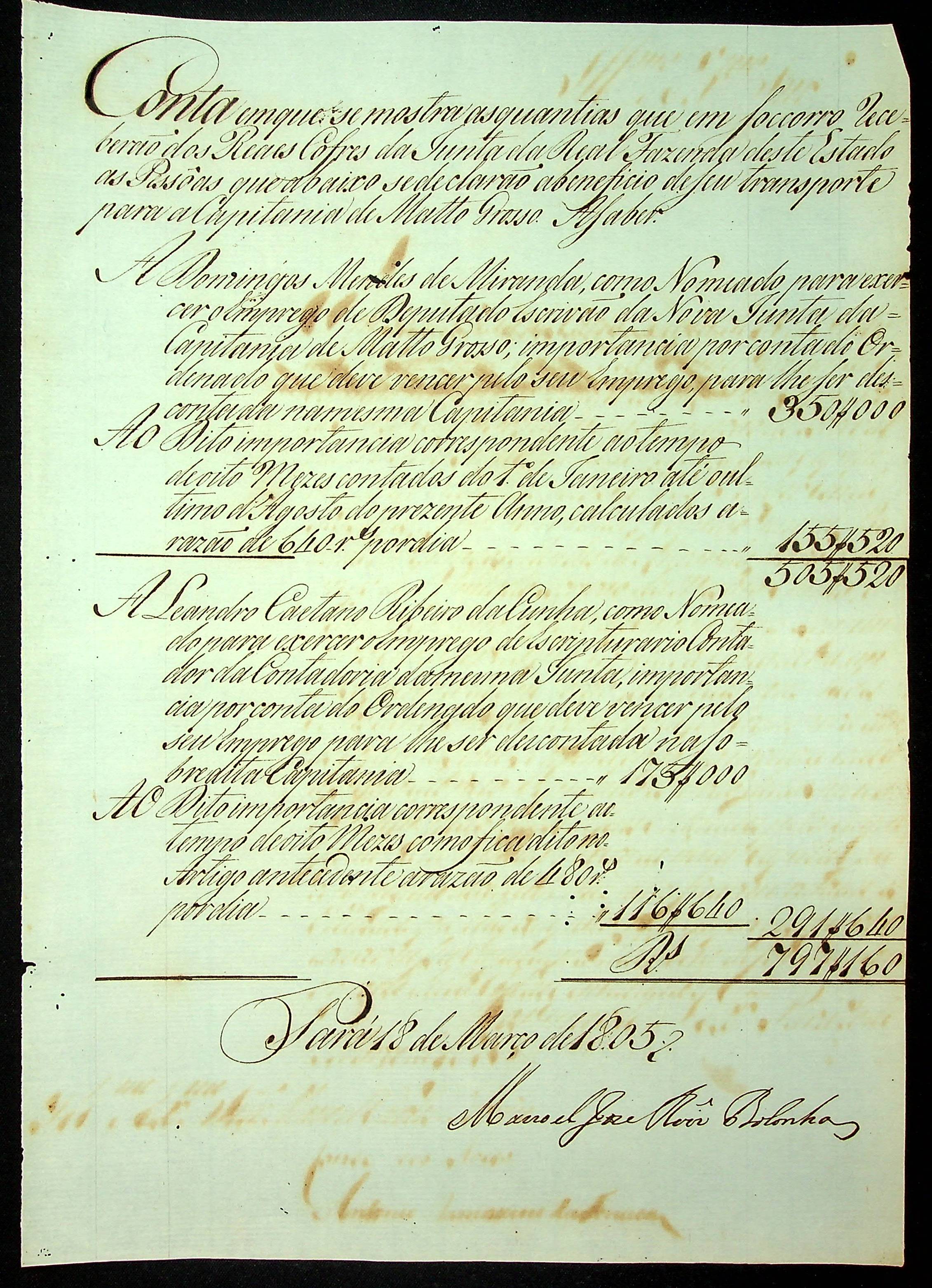 CARTA da [Junta] ao [Governador e Capitão-General da Capitania de Mato Grosso] Manoel Carlos de Abreu e Menezes.