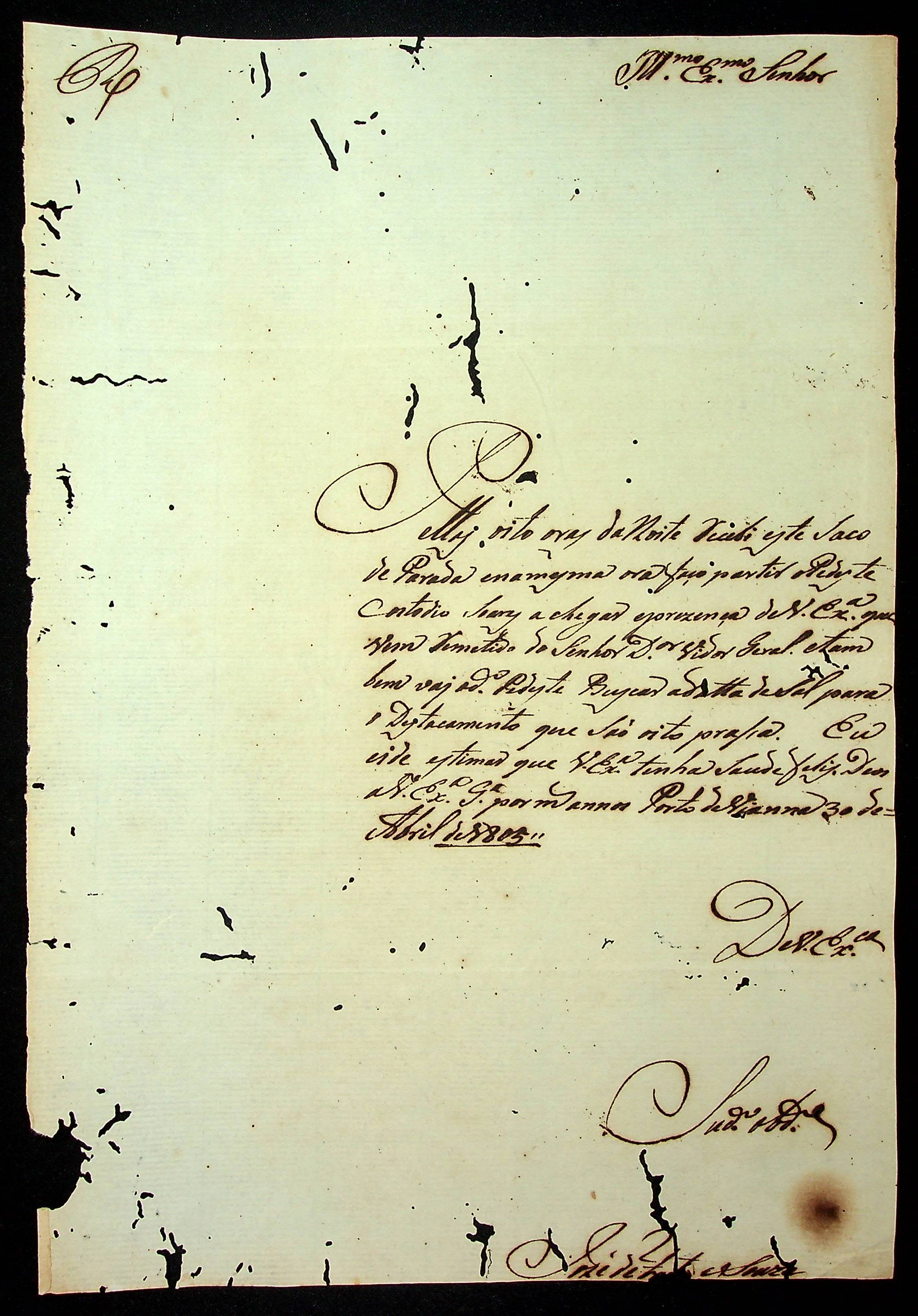 CARTA de José de Freitas Souza ao [Governador e Capitão-General da Capitania de Mato Grosso Manoel Carlos de Abreu e Menezes].