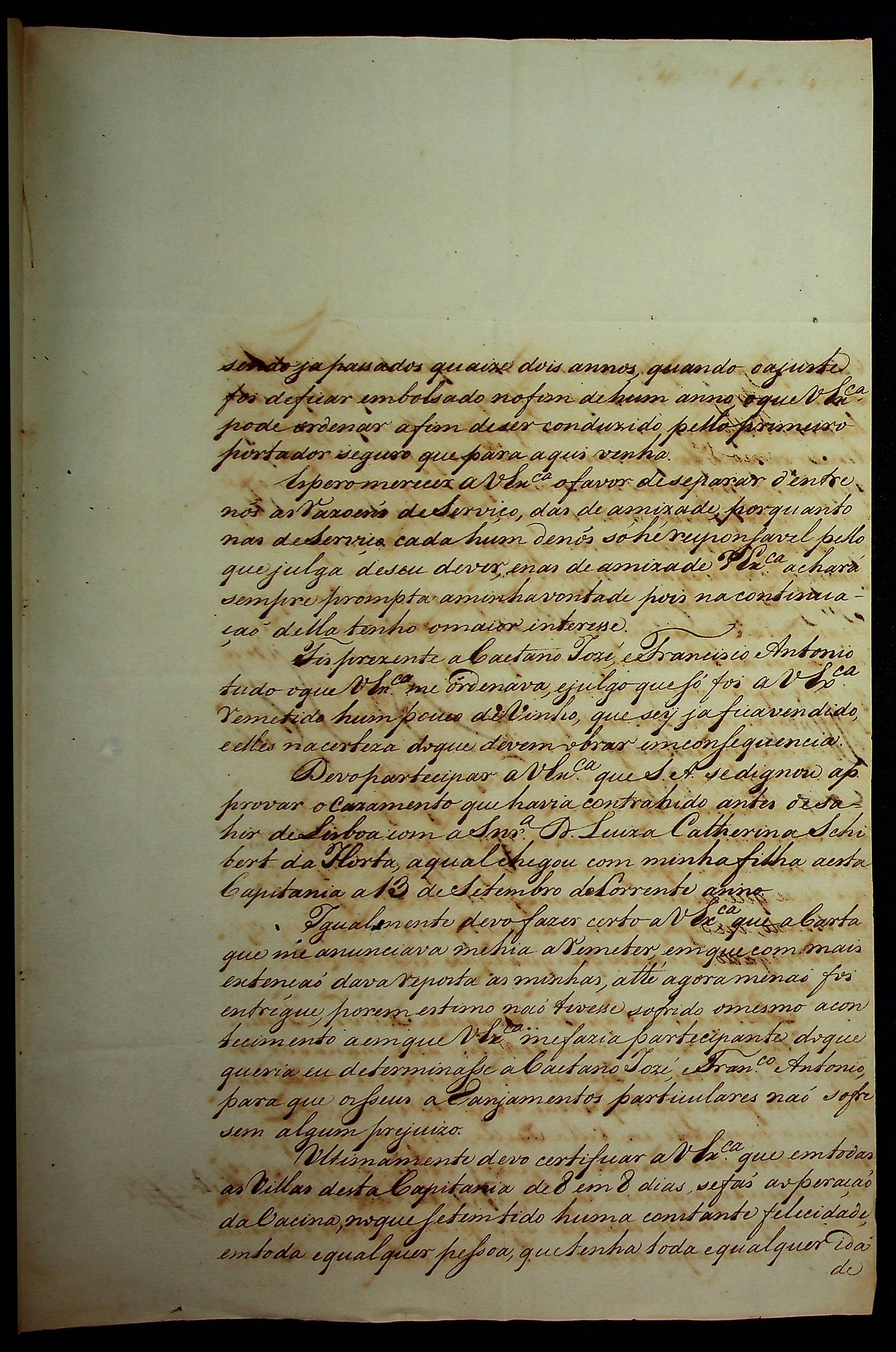 CARTA de Antônio José da Fonseca e Horta ao [Governador e Capitão-General da Capitania de Mato Grosso] Manoel Carlos de Abreu e Menezes.