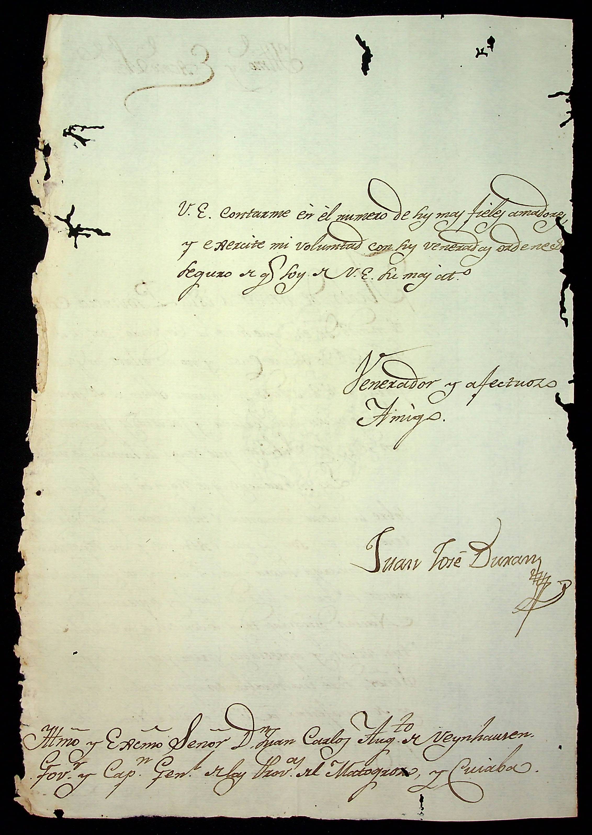 CARTA de Juan José Duran ao Governador e Capitão-General da Capitania de Mato Grosso João Carlos Augusto d´Oeynhausen e Gravemberg.
