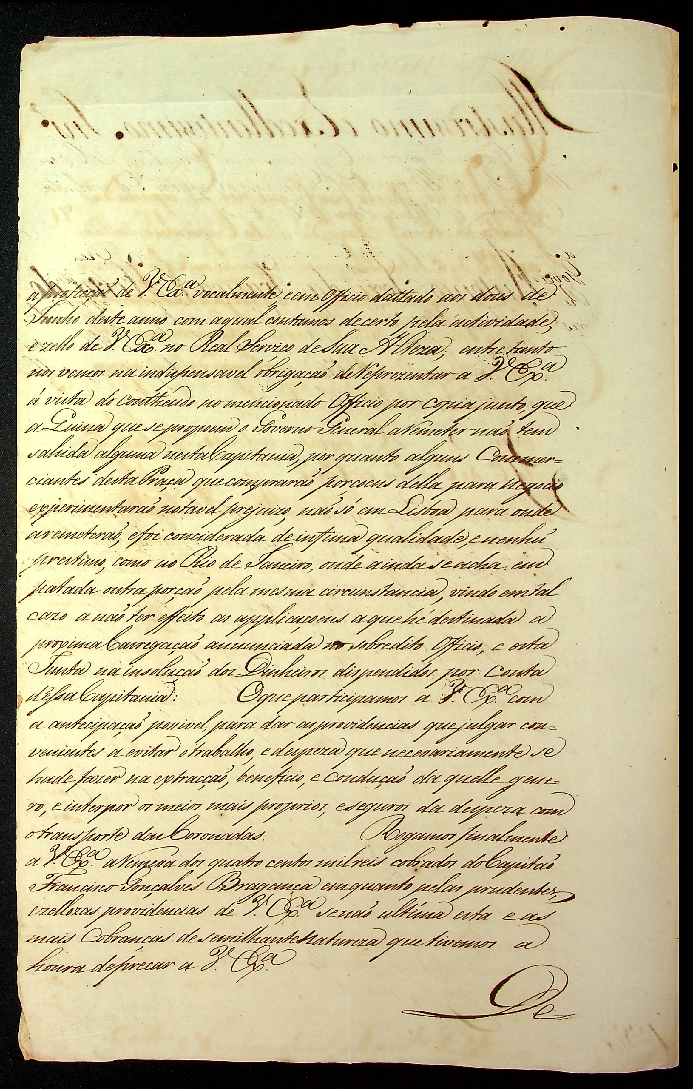 CARTA da Junta da Administração e Arrecadação da Real Fazenda da Capitania de São Paulo ao Governador e Capitão General da Capitania de Mato Grosso João Carlos Augusto d'Oeynhausen e Gravemberg.