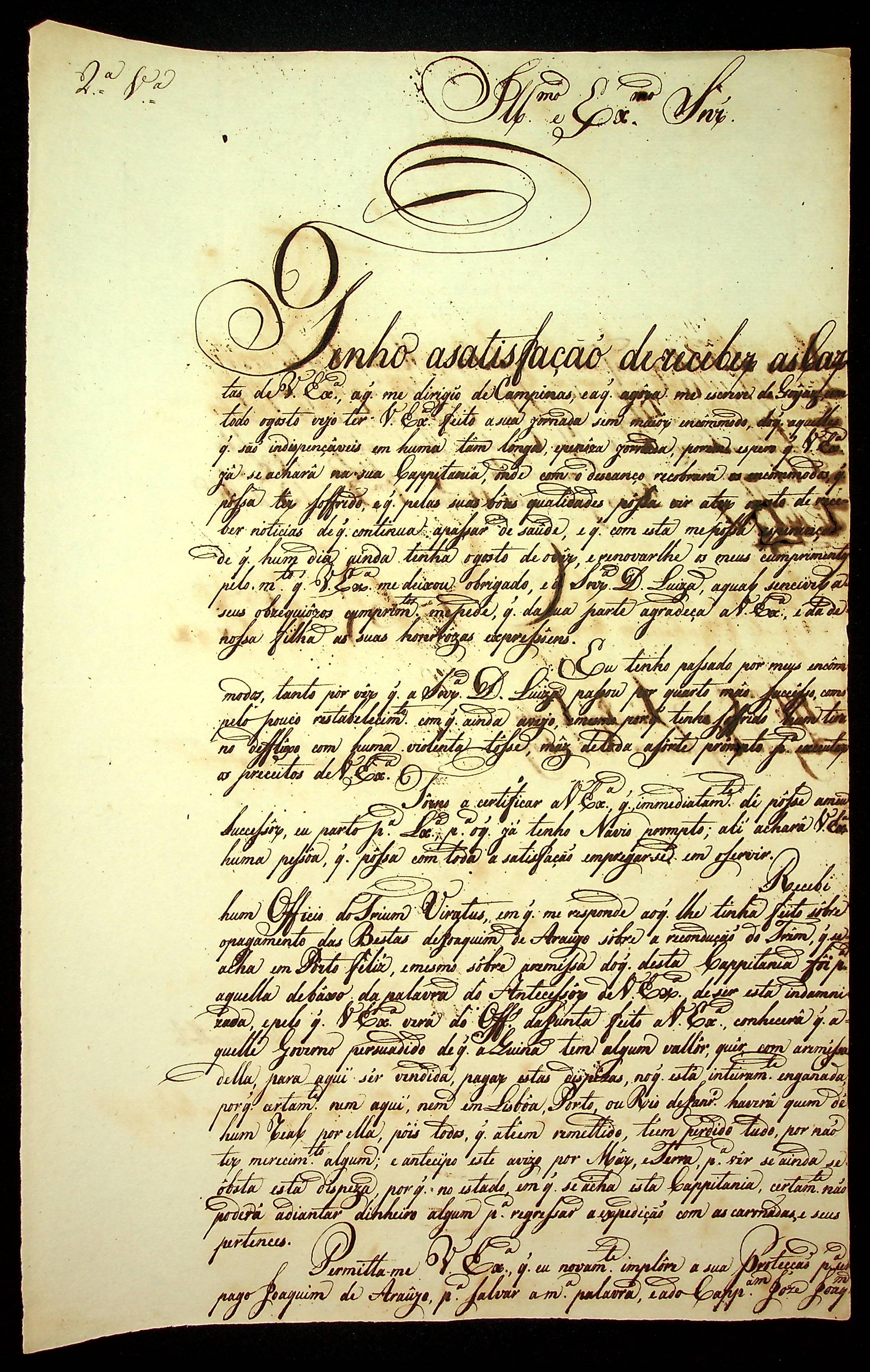 CARTA de Antônio José da [França] Horta ao [Governador e Capitão-General da Capitania de Mato Grosso] João Carlos Augusto de Oeynhausen e Gravemberg.
