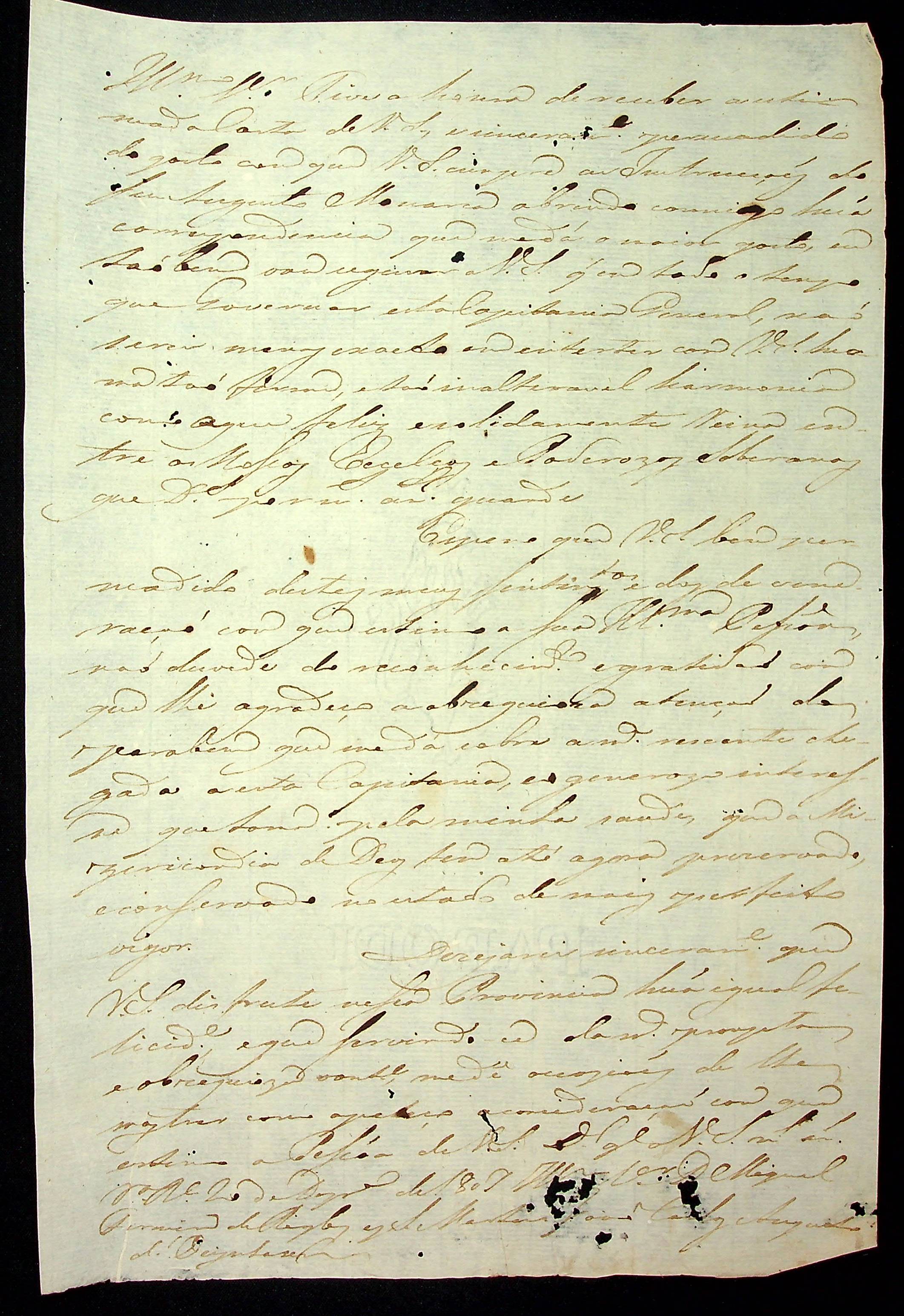 CARTA do Governador e Capitão-General da Capitania de Mato Grosso João Carlos Augusto de Oeynhausen e Gravemberg a [Miguel Ferreira de Riglos].