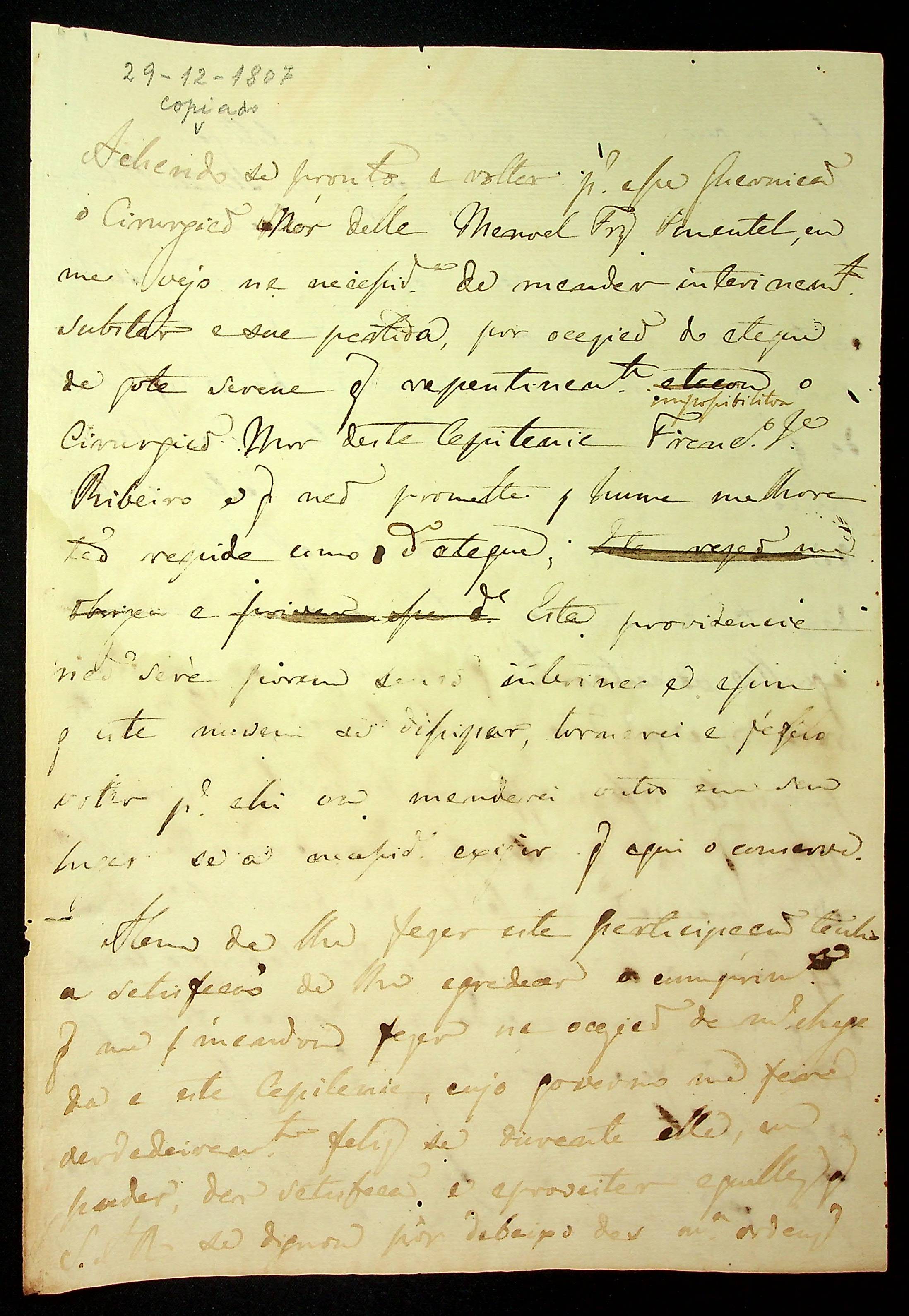 CARTA do [Governador e Capitão-General da Capitania de Mato Grosso João Carlos Augusto de Oeynhausen e Gravemberg] ao Sargento Mor Antônio José [Rodrigues].