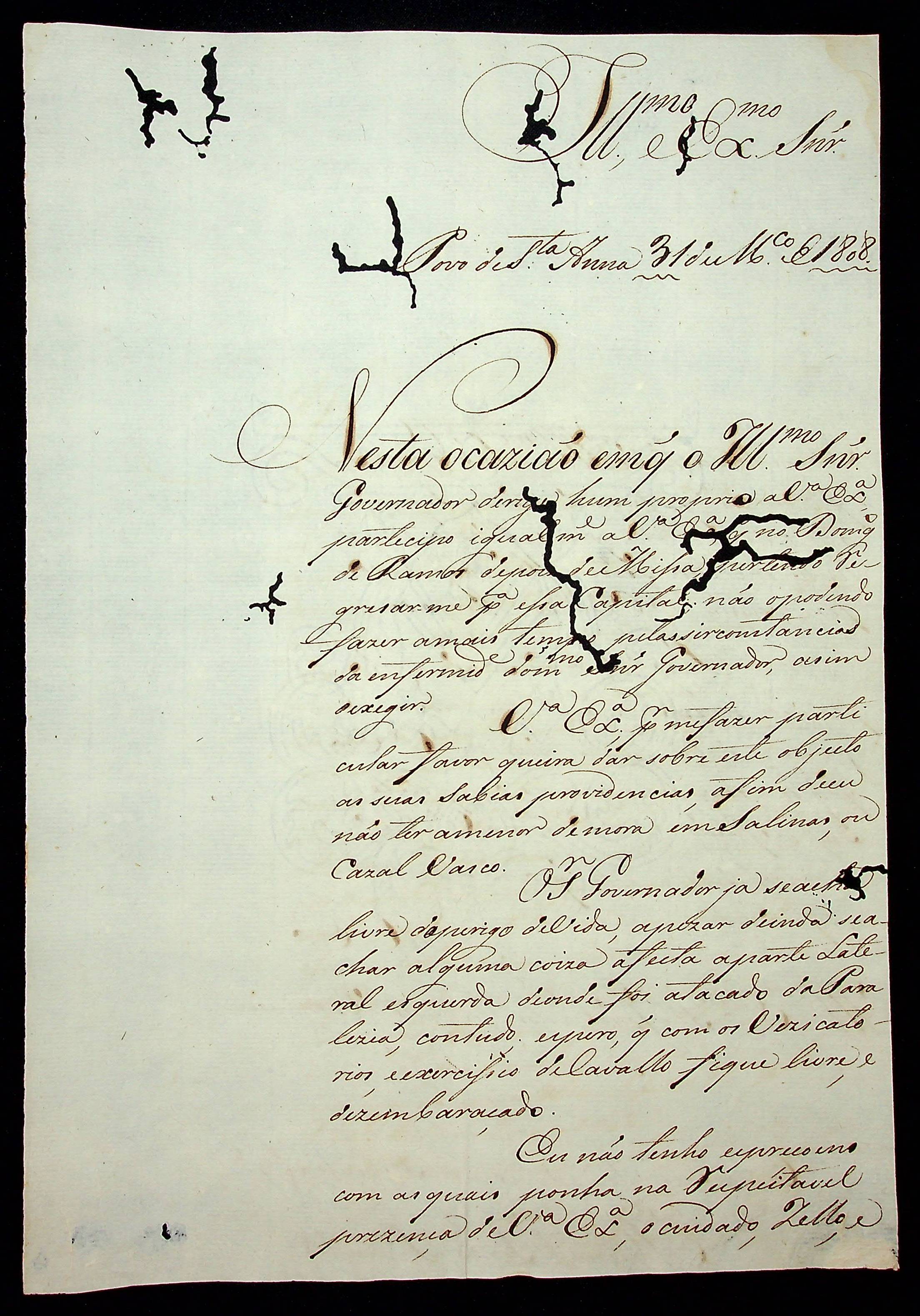 CARTA de Manoel Fernando Pimentel ao [Governador e Capitão-General da Capitania de Mato Grosso] João Carlos Augusto D’Oeynhausen e Gravemberg.