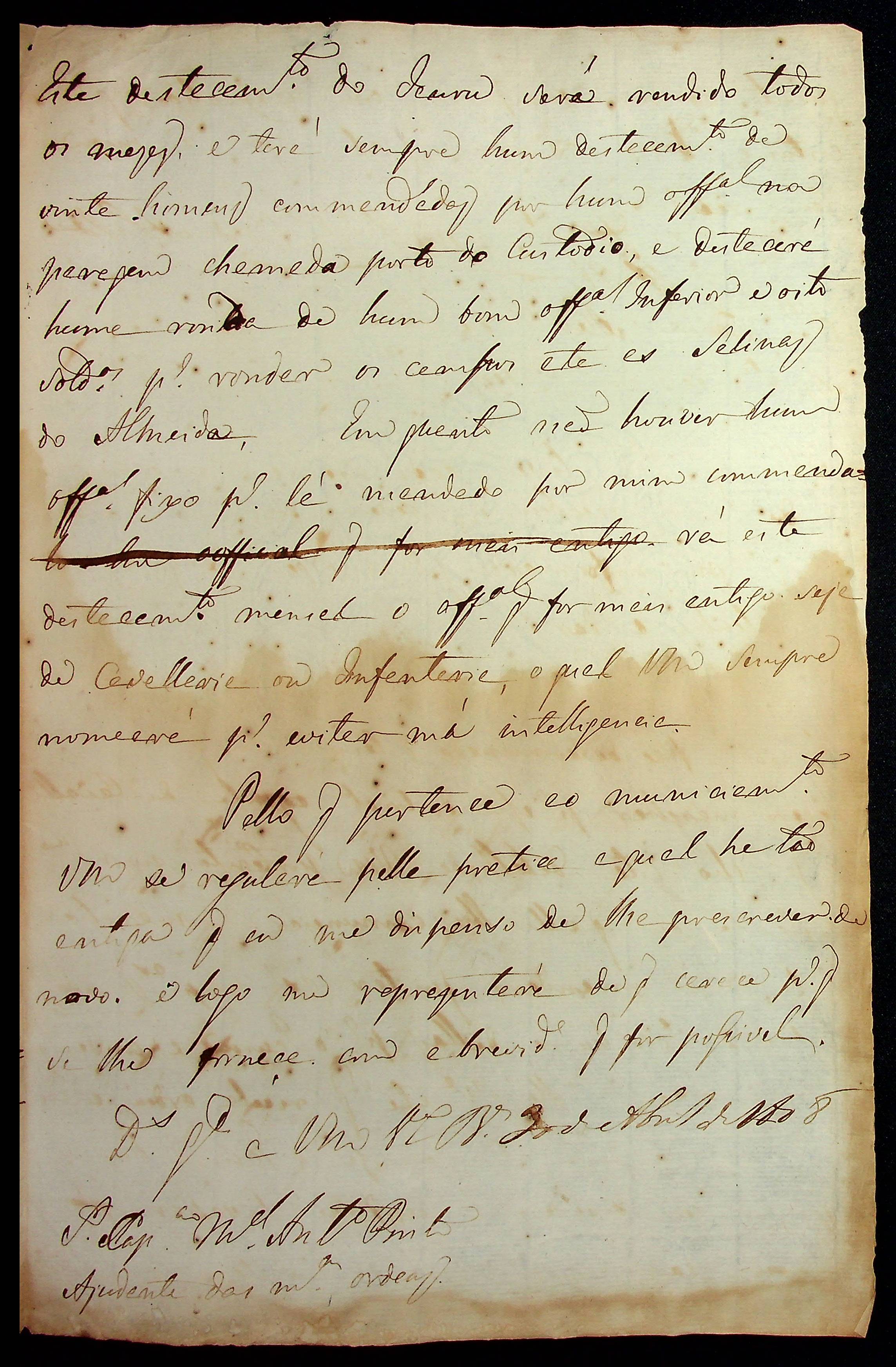 CARTA do [Governador e Capitão-General da Capitania de Mato Grosso João Carlos Augusto de Oeynhausen e Gravemberg] ao Ajudante de Ordens Manoel Antônio Pinto.