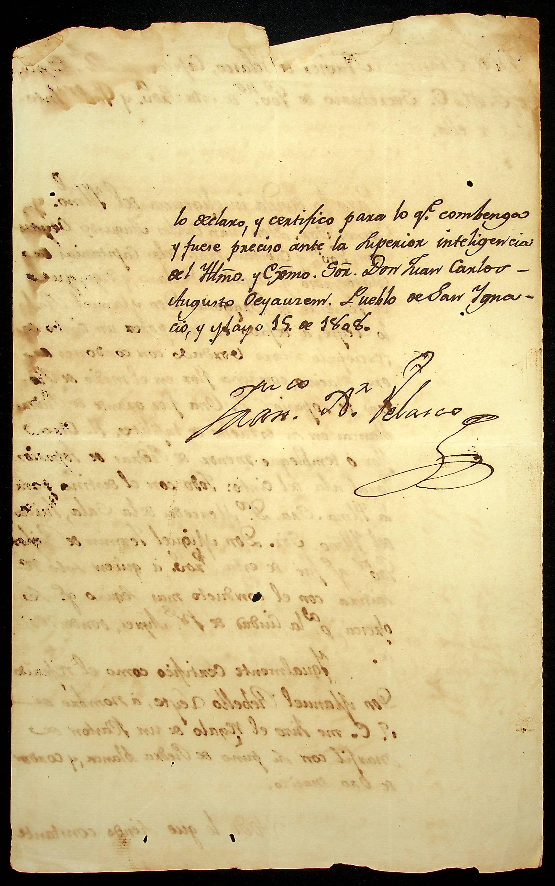 CARTA do Secretário de Governo e Governador Interino da Província [São Inácio] Francisco Xavier Velasco ao [Governador e Capitão-General da Capitania de Mato Grosso João Carlos Augusto D’Oeynhausen e Gravemberg].