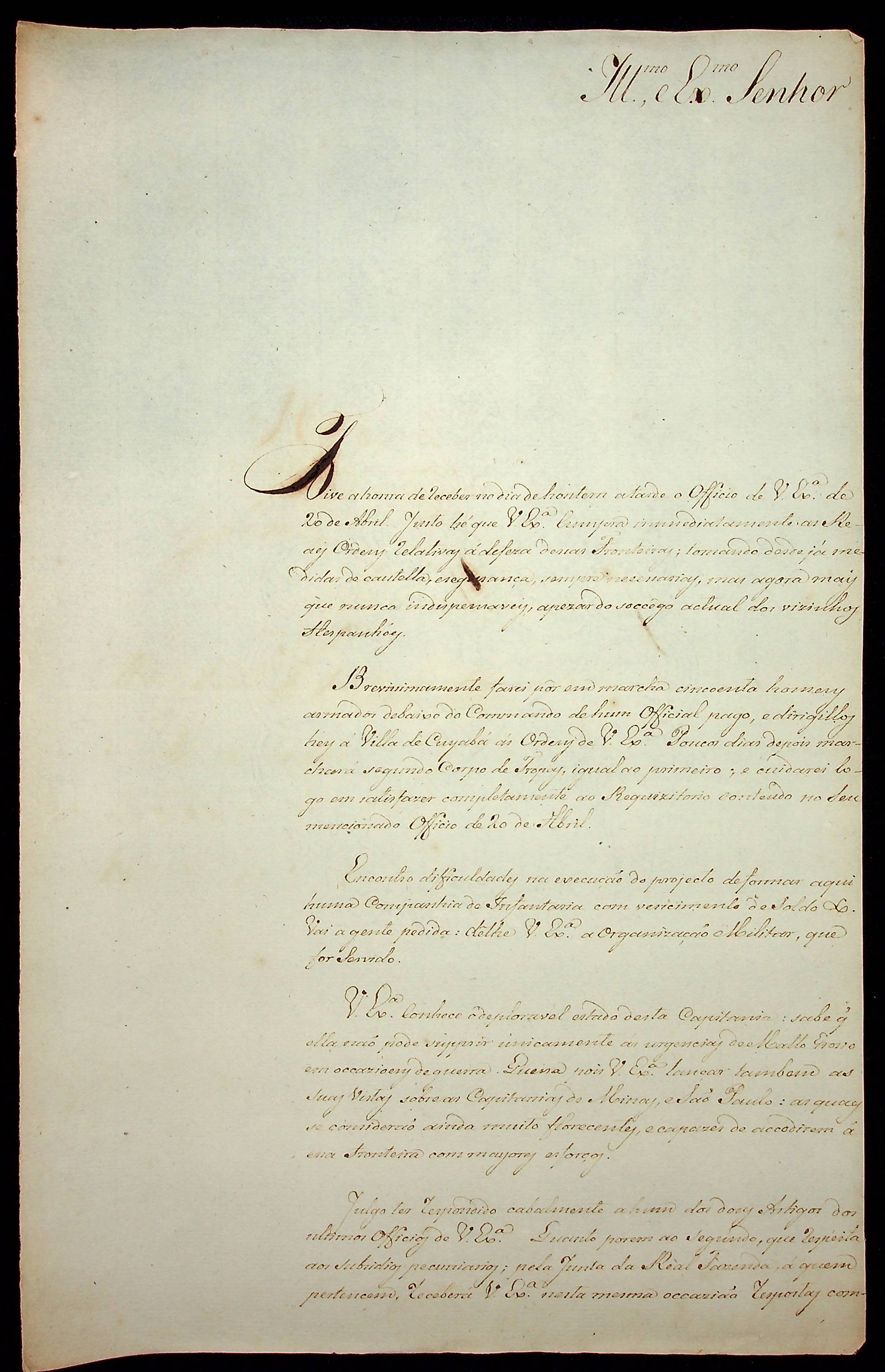 CARTA de D. Francisco de Assis Mascarenhas ao [Governador e Capitão-General da Capitania de Mato Grosso] João Carlos Augusto D’Oeynhausen e Gravemberg.