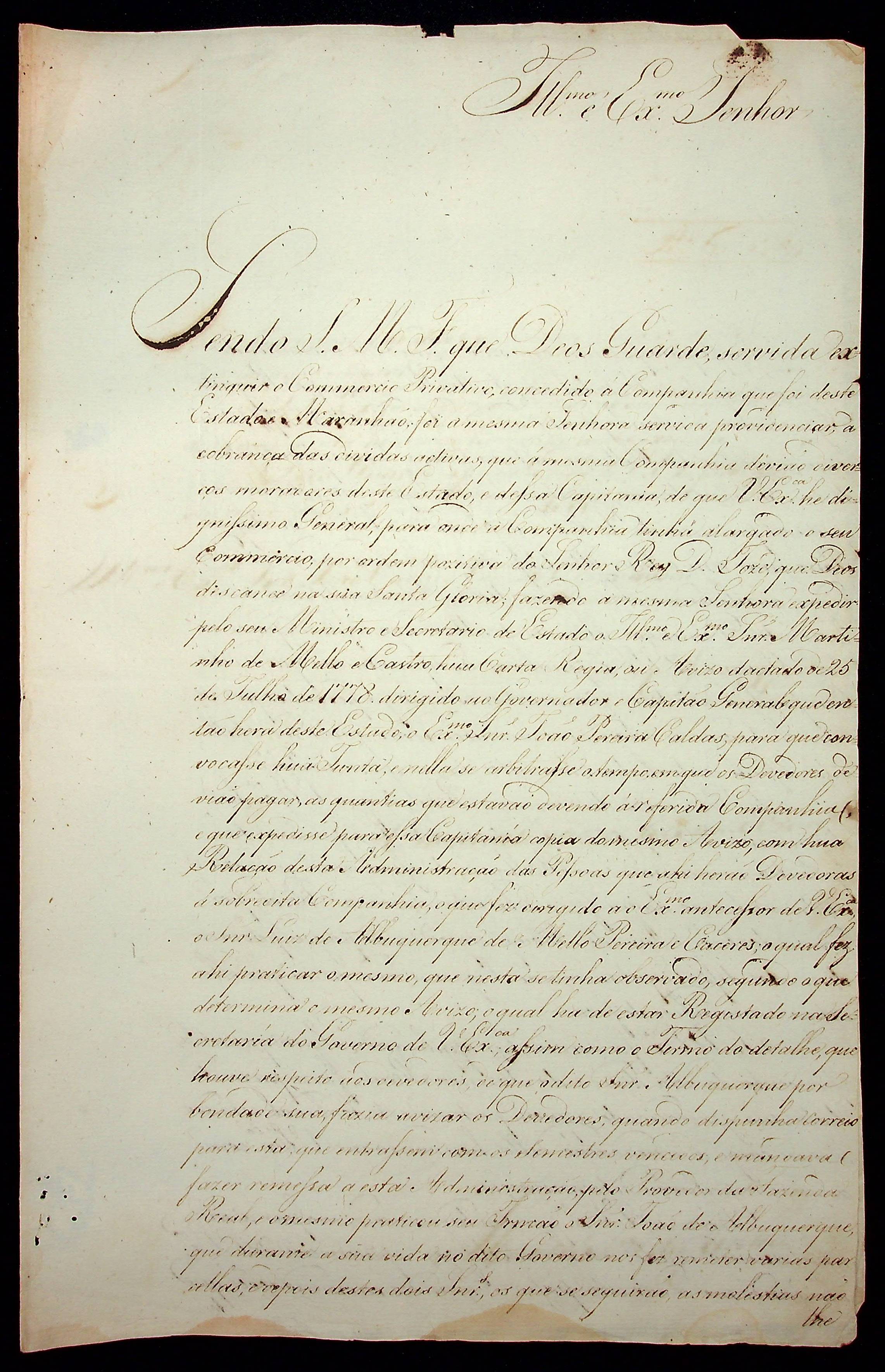 CARTA de Manoel José da Cunha ao [Governador e Capitão-General da Capitania de Mato Grosso] João Carlos Augusto D’Oeynhausen e Gravemberg.