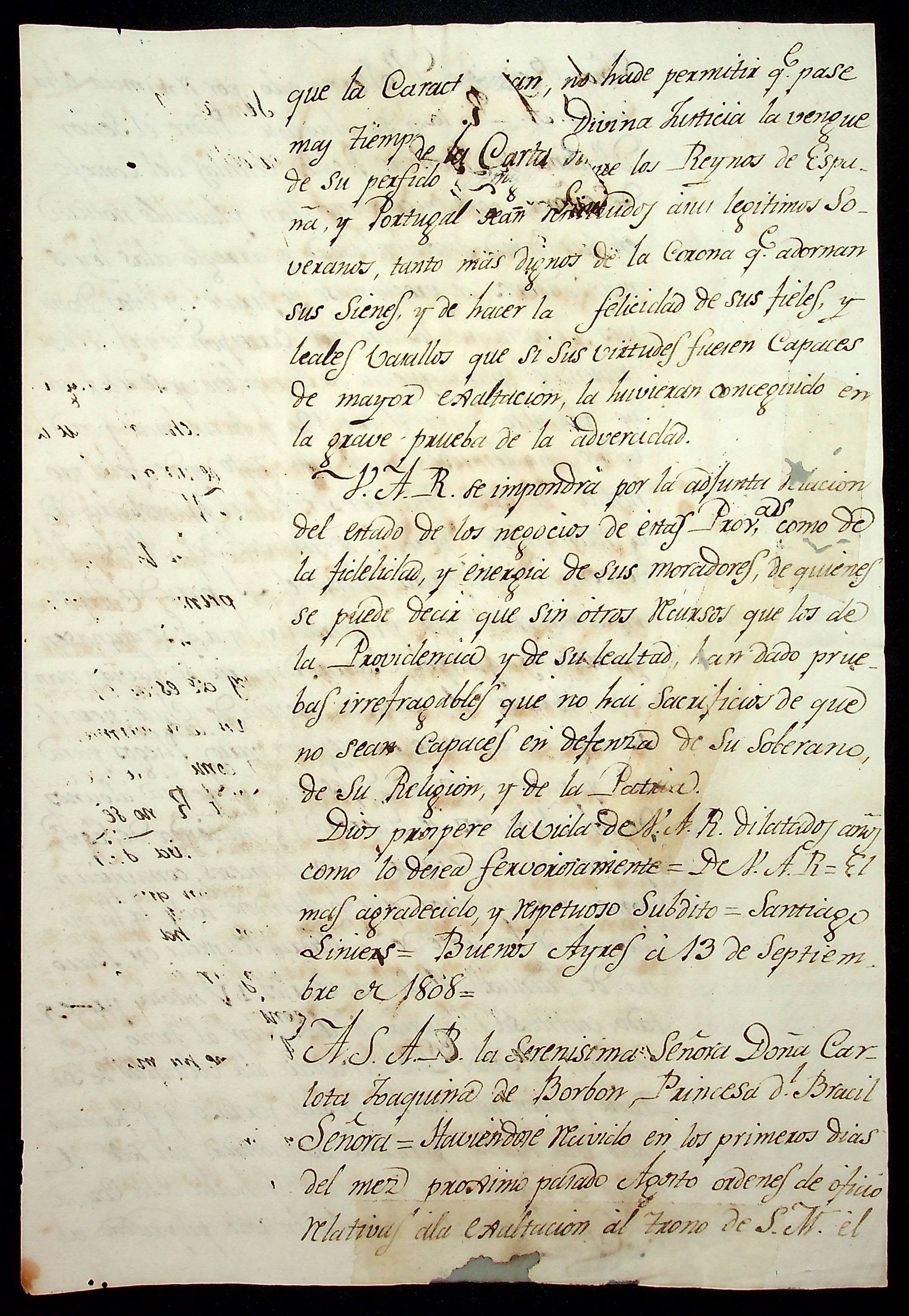 CARTA (conjunto) de D. [Santiago Liniexs] a Senhora Infanta Dona Carlota Joaquina de Bourbon.