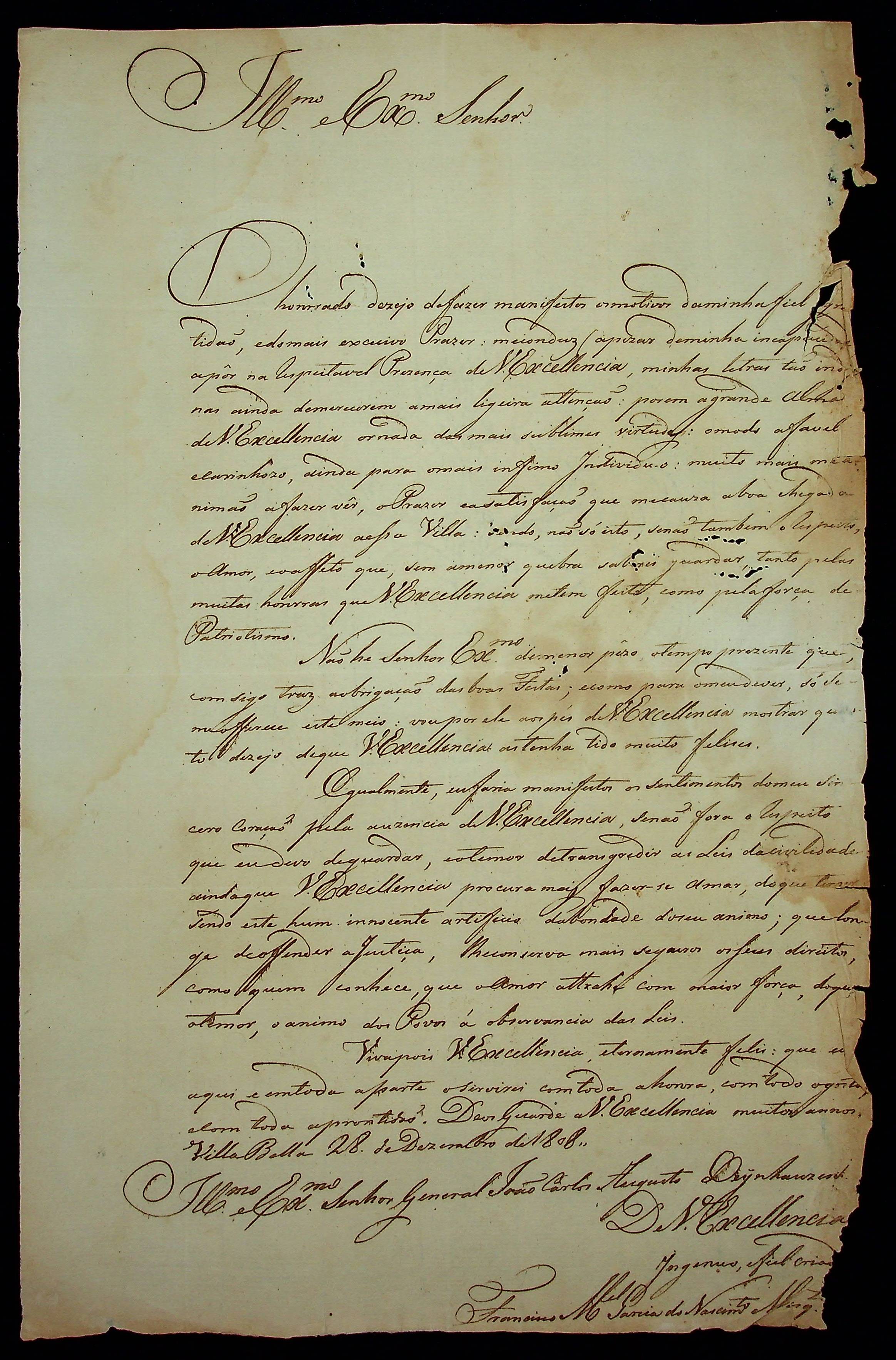 CARTA de Francisco Manoel Garcia do Nascimento Albuquerque ao [Governador e Capitão-General da Capitania de Mato Grosso João Carlos Augusto D’Oeynhausen e Gravemberg].