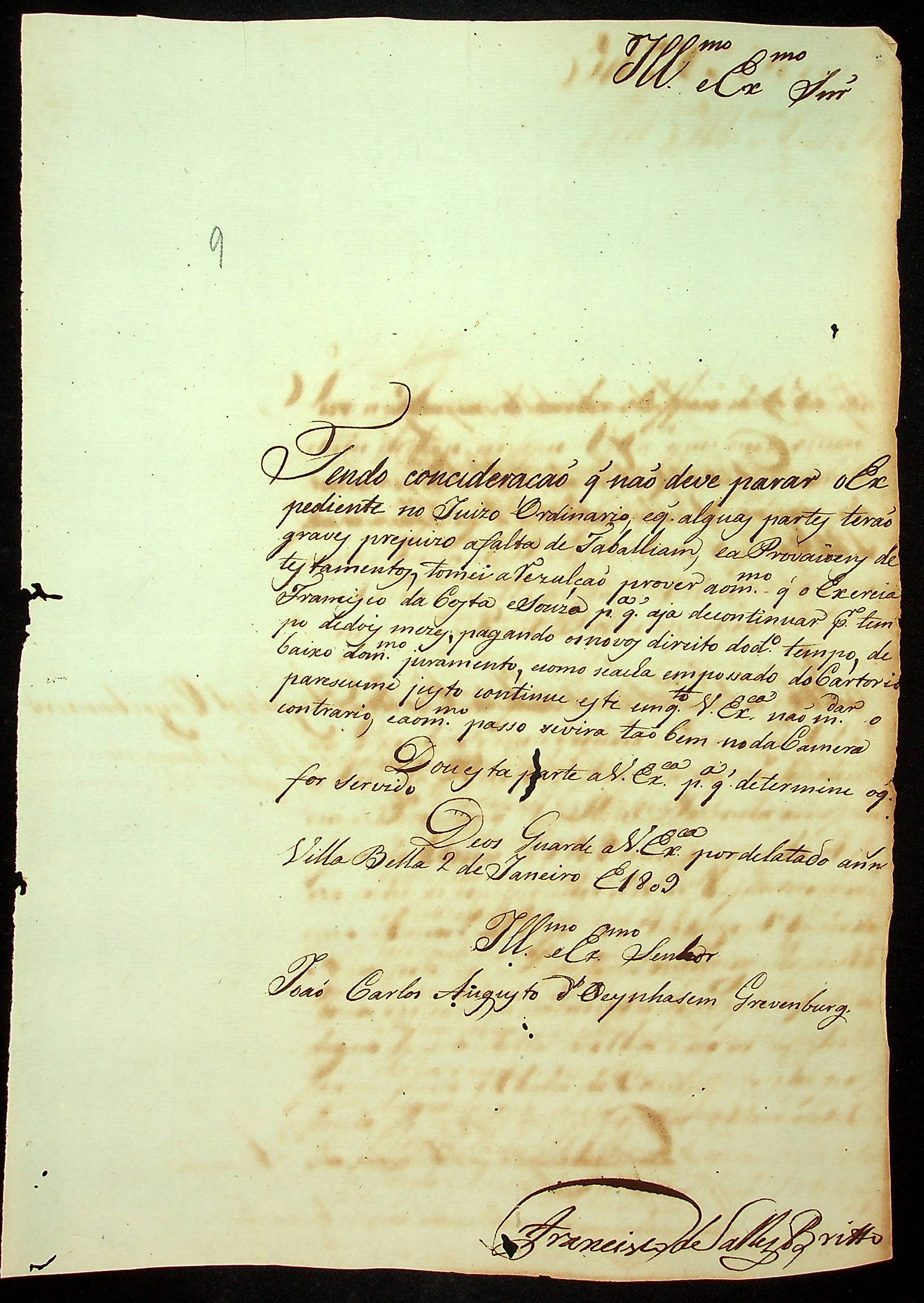 CARTA de Francisco de Sales Brito ao [Governador e Capitão-General da Capitania de Mato Grosso] João Carlos Augusto D’Oeynhausen e Gravemberg.