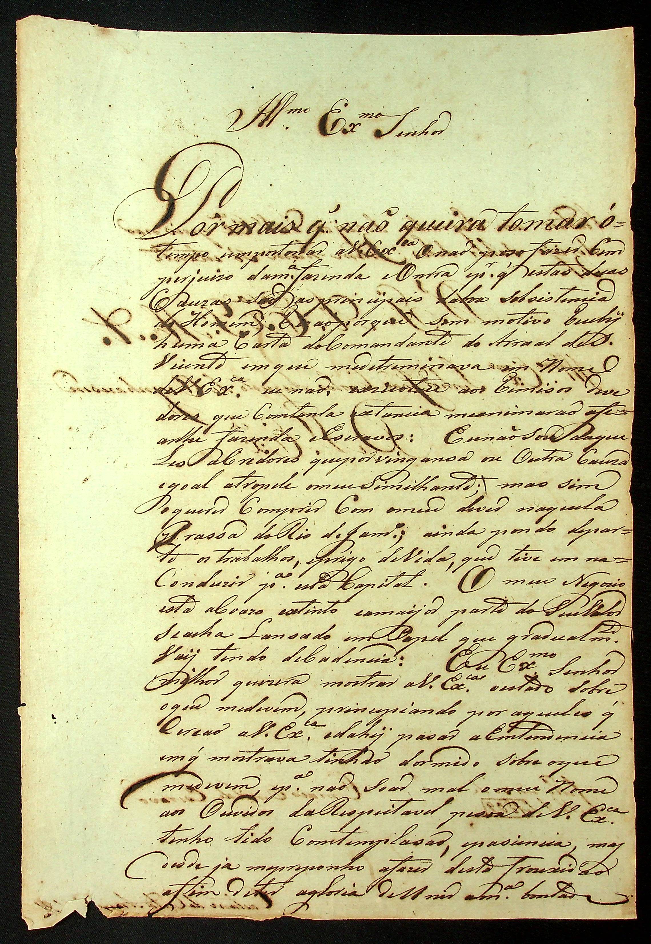CARTA de Caetano da Costa Araújo Mello ao [Governador e Capitão-General da Capitania de Mato Grosso] João Carlos Augusto D’Oeynhausen e Gravemberg.