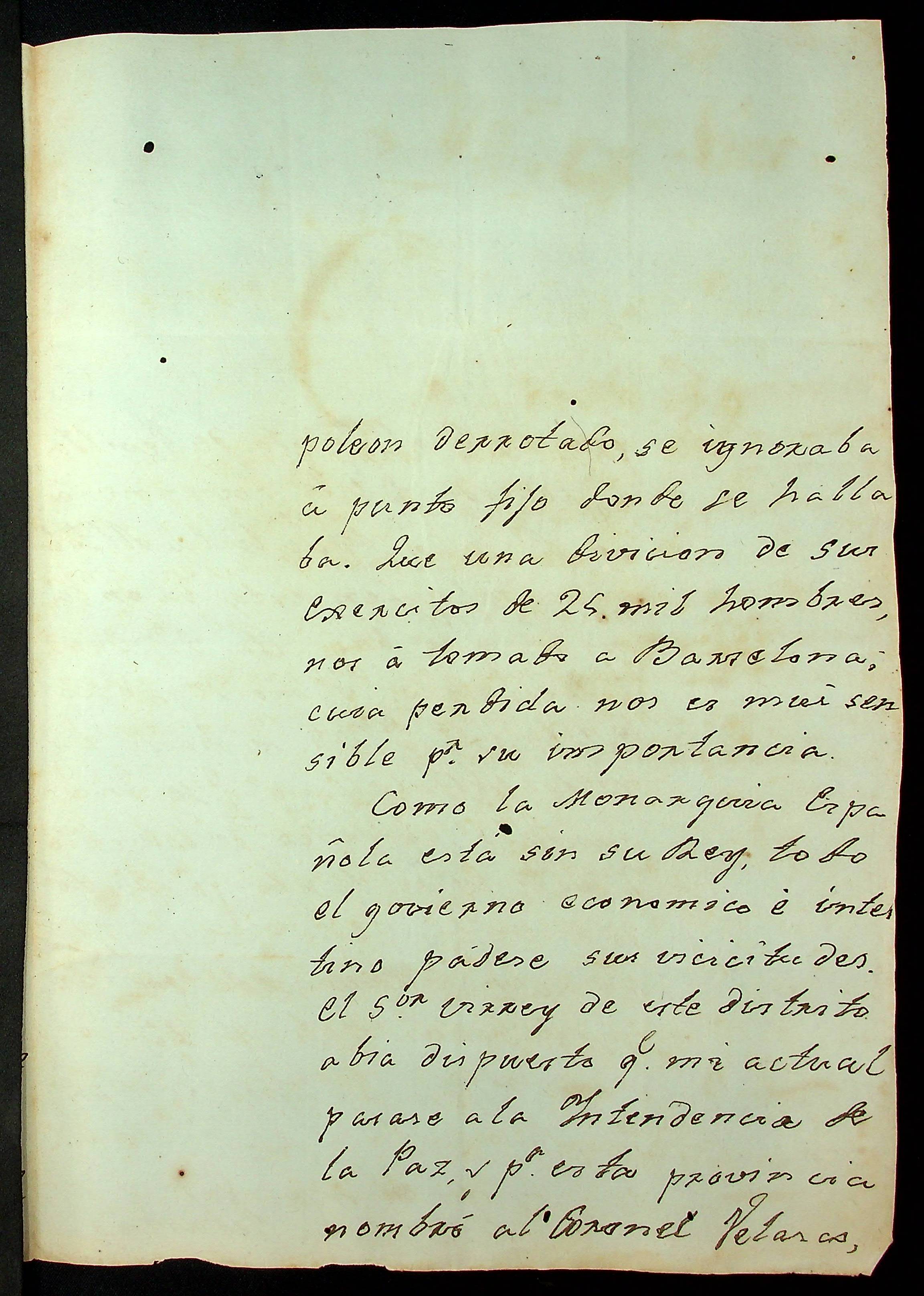CARTA de [...] Velasco ao [Governador e Capitão-General da Capitania de Mato Grosso] João Carlos Augusto D’ Oeynhausen e Gravemberg.