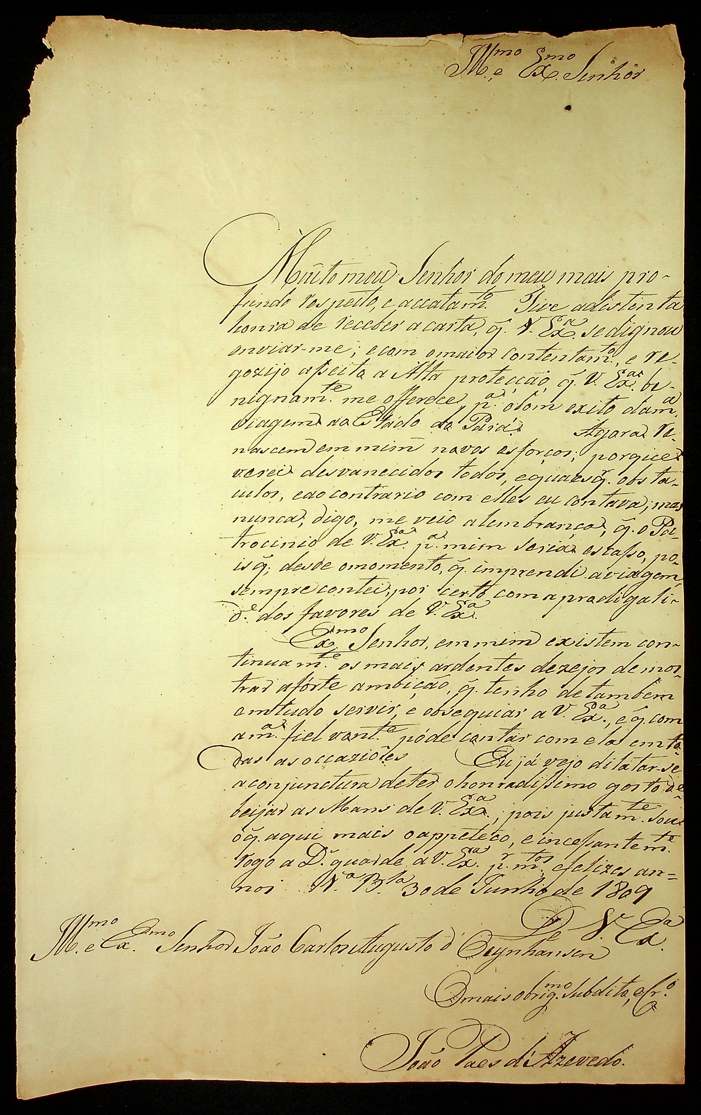 CARTA de João Paes de Azevedo ao [Governador e Capitão-General da Capitania de Mato Grosso] João Carlos Augusto D’Oeynhausen e Gravemberg.