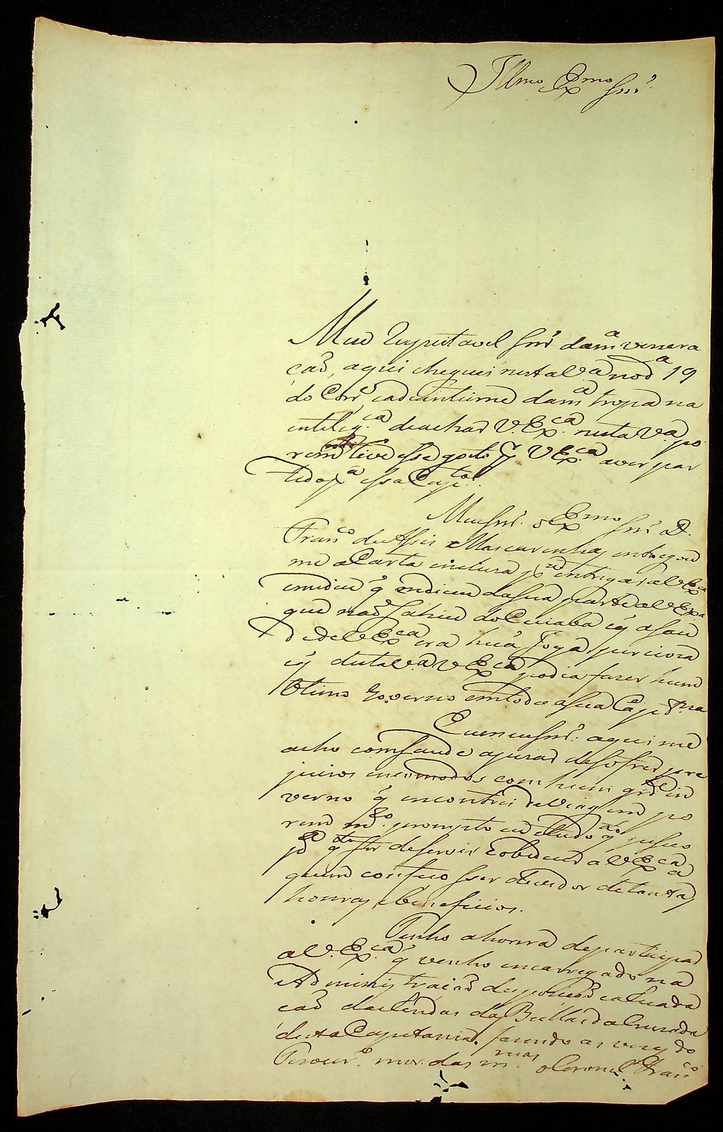 CARTA de Antônio João Passos ao [Governador e Capitão-General da Capitania de Mato Grosso João Carlos Augusto D’Oeynhausen e Gravemberg].