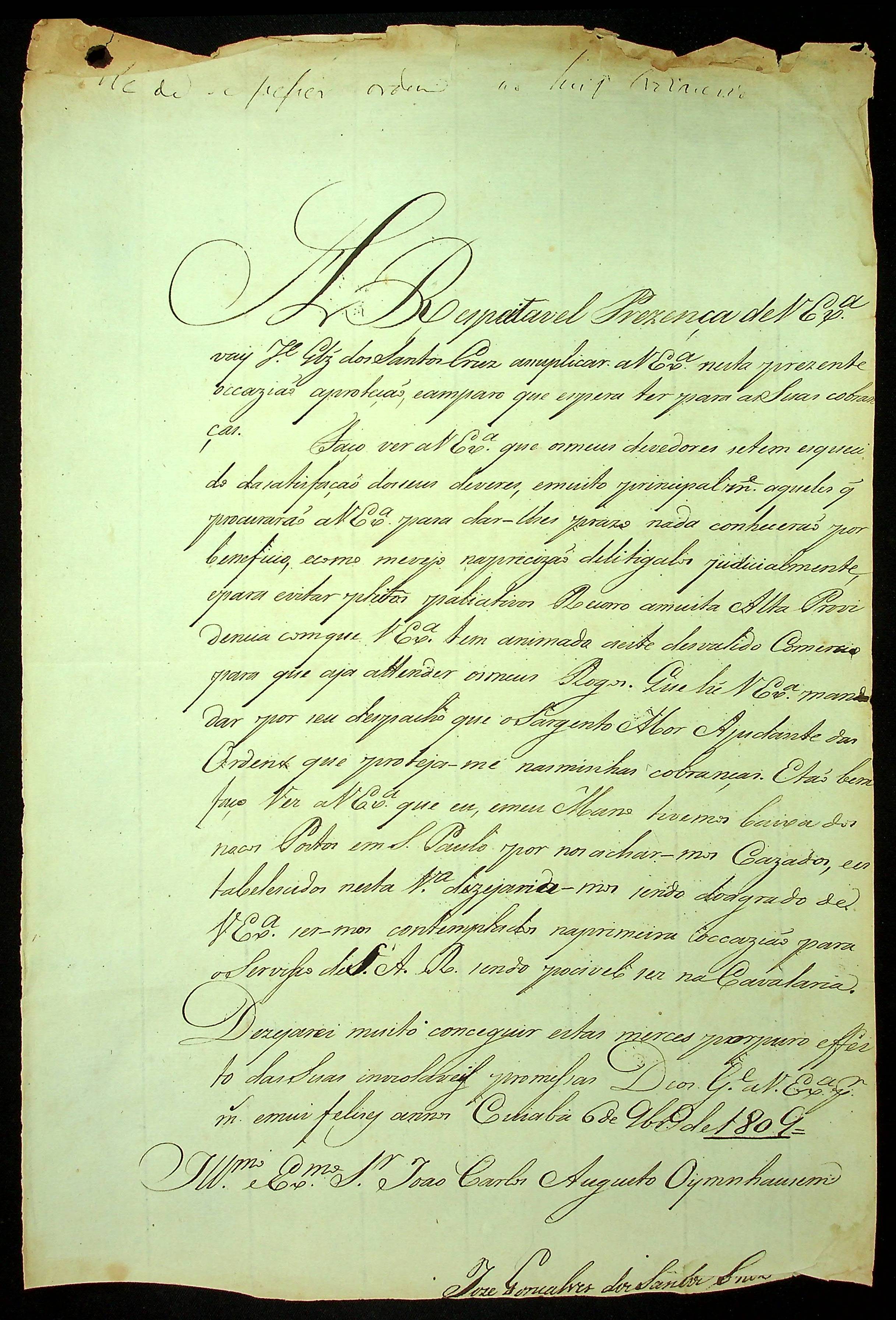 CARTA de José Gonçalves dos Santos Cruz ao [Governador e Capitão-General da Capitania de Mato Grosso] João Carlos Augusto D’Oeynhausen e Gravemberg.