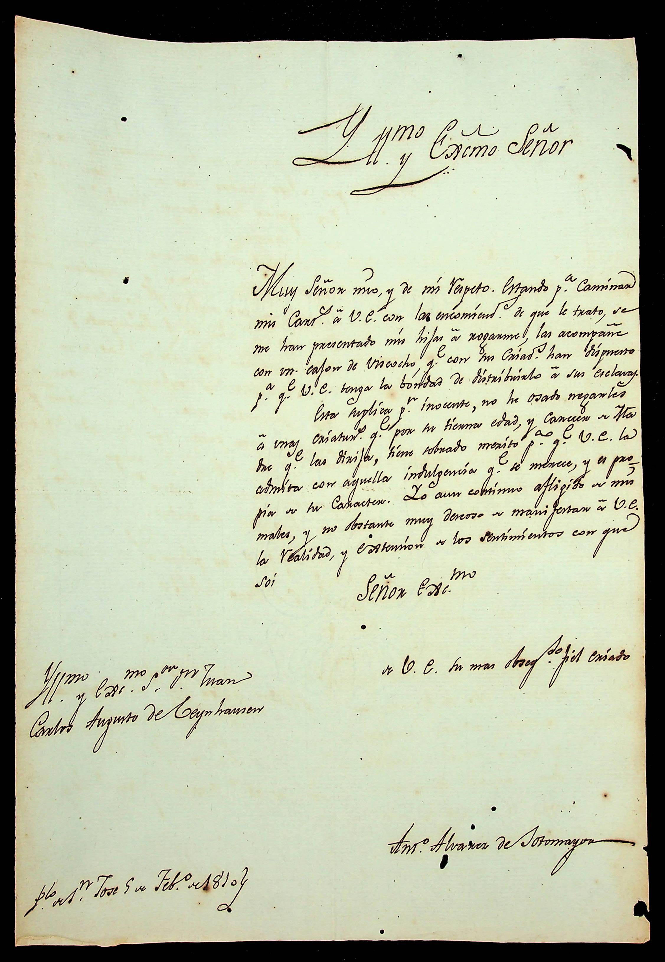 CARTA do [Governador e Comandante General da Província de Chiquitos] Antônio Alvarez de Sotomayoz ao [Governador e Capitão-General da Capitania de Mato Grosso] João Carlos Augusto D’Oeynhausen e Gravemberg