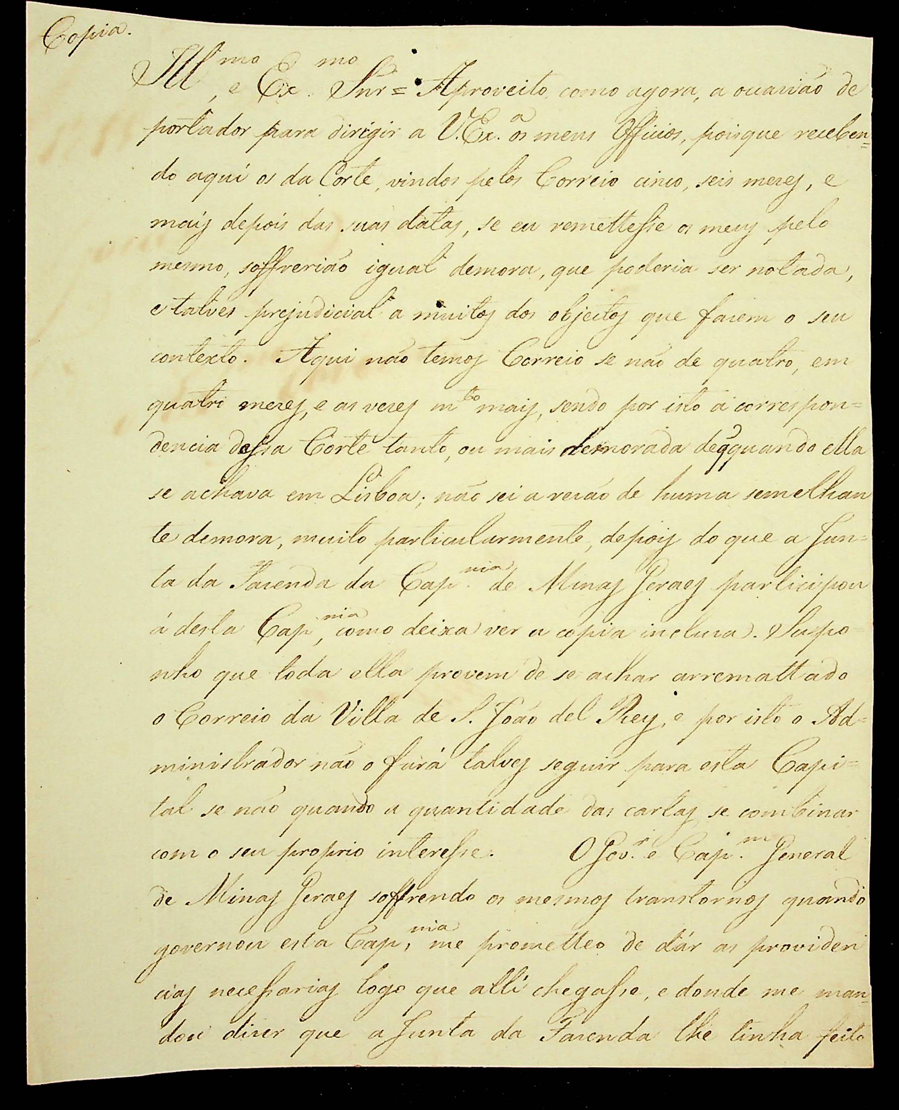 CARTA (cópia) do [Governador e Capitão-General da Capitania de Goiás] Fernando Delgado Freire de Castilho para o Conde de Aguiar.