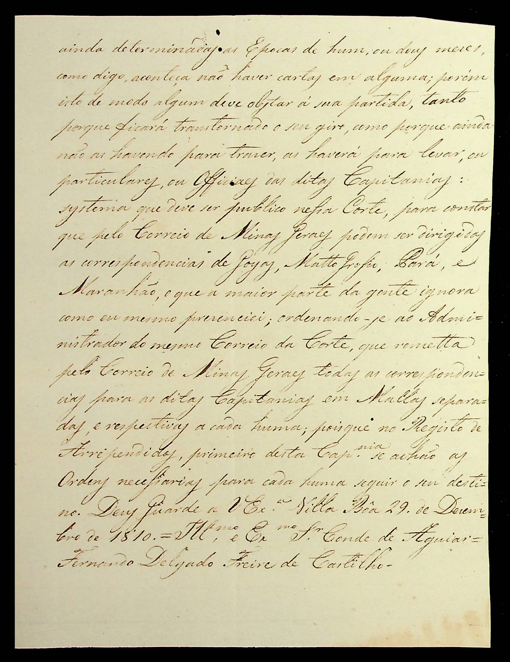 CARTA (cópia) do [Governador e Capitão-General da Capitania de Goiás] Fernando Delgado Freire de Castilho para o Conde de Aguiar.