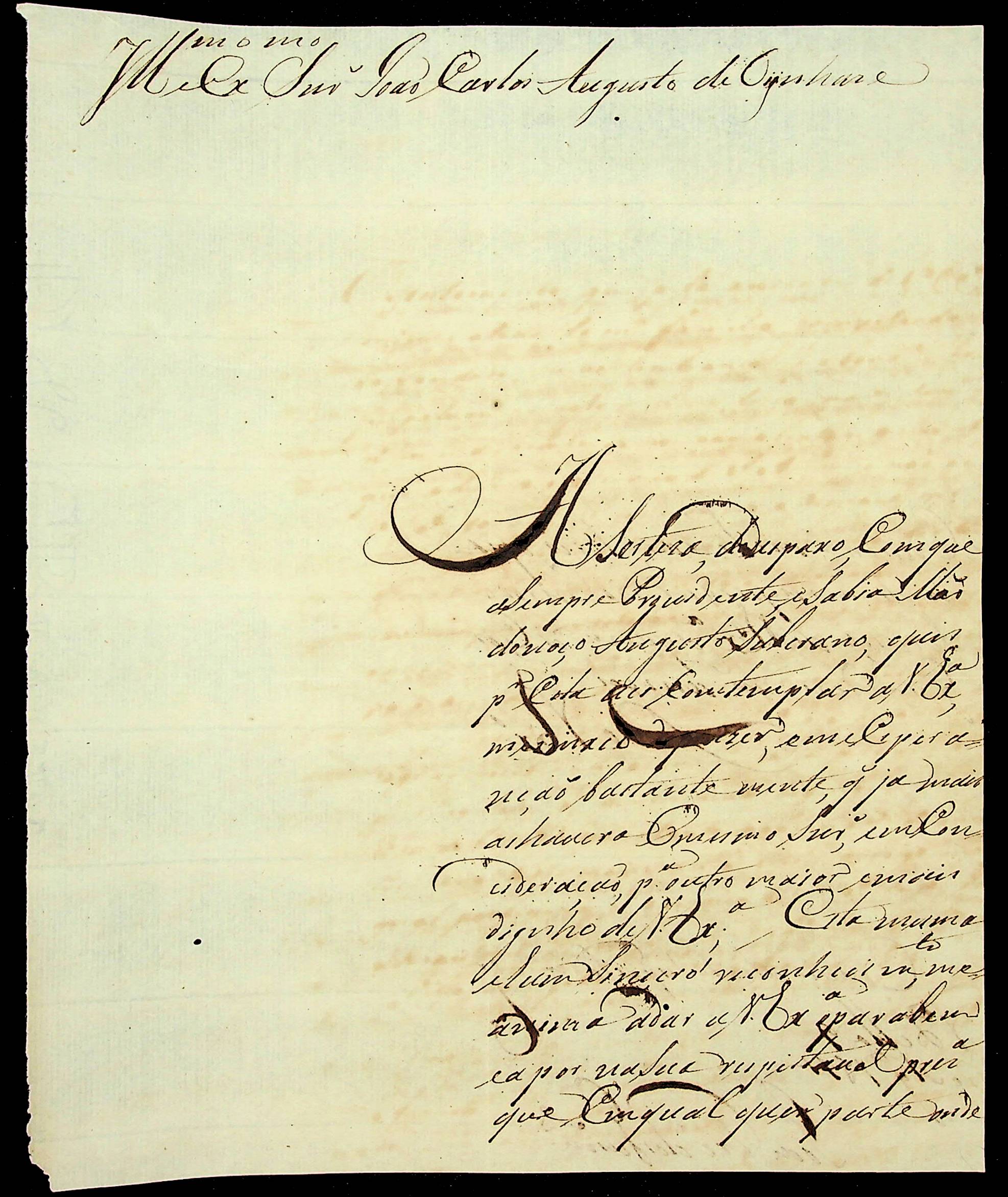 CARTA de João [Françoso] dos Guimarães ao [Governador e Capitão-General da Capitania de Mato Grosso] João Carlos Augusto D’Oeynhausen e Gravemberg.