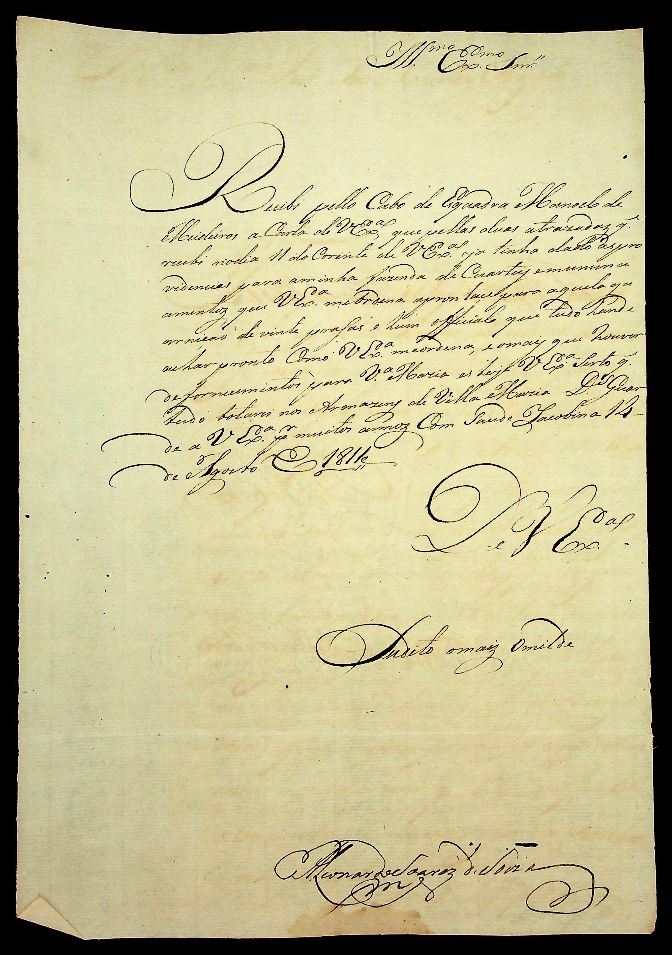 CARTA de Leonardo Soares de Souza ao [Governador e Capitão-General da Capitania de Mato Grosso João Carlos Augusto D’Oeynhausen e Gravemberg].