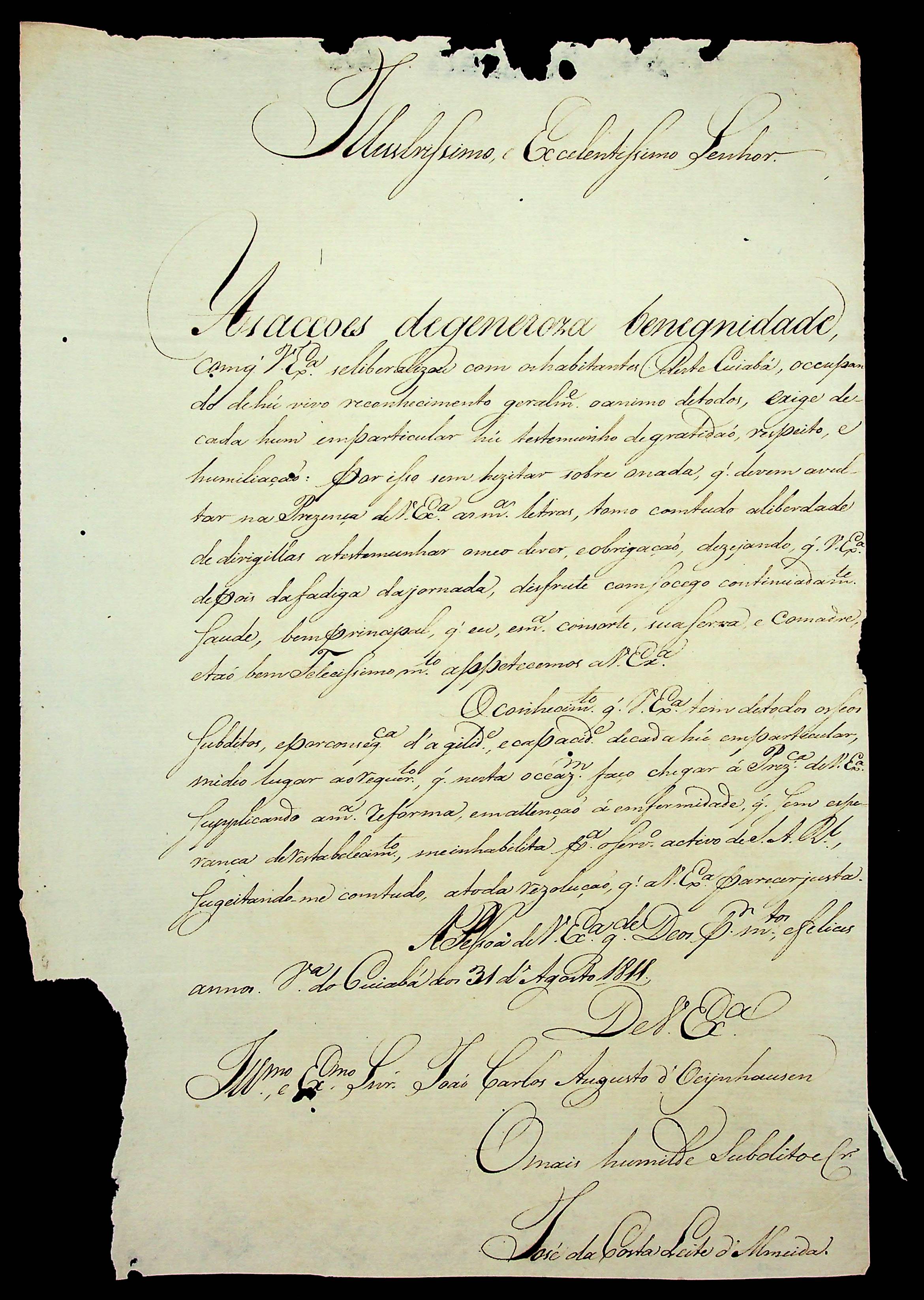 CARTA de José da Costa Leite de Almeida ao [Governador e Capitão-General da Capitania de Mato Grosso] João Carlos Augusto D’Oeynhausen e Gravemberg.