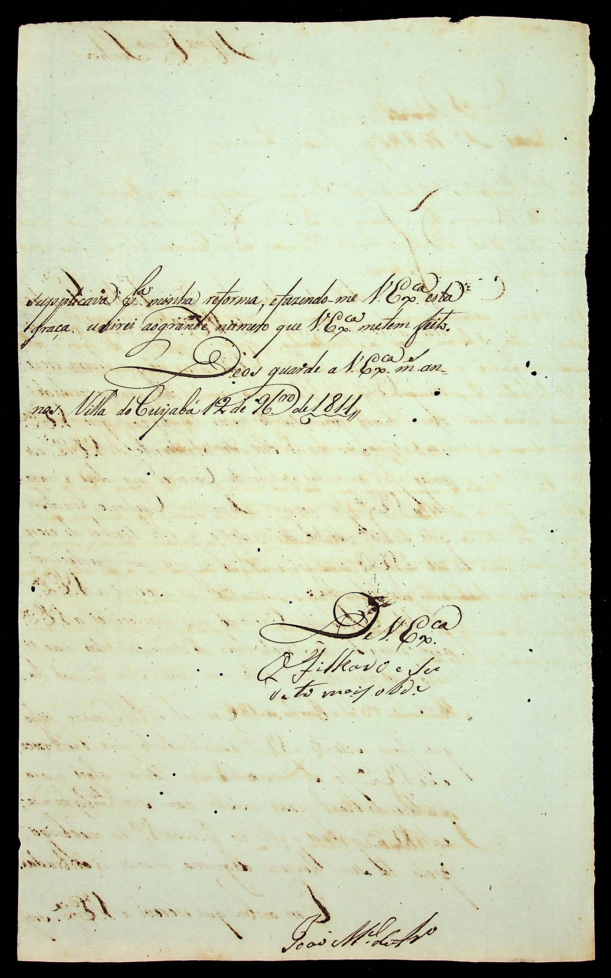 CARTA de João Manoel de Araújo ao [Governador e Capitão-General da Capitania de Mato Grosso João Carlos Augusto D’Oeynhausen e Gravemberg].