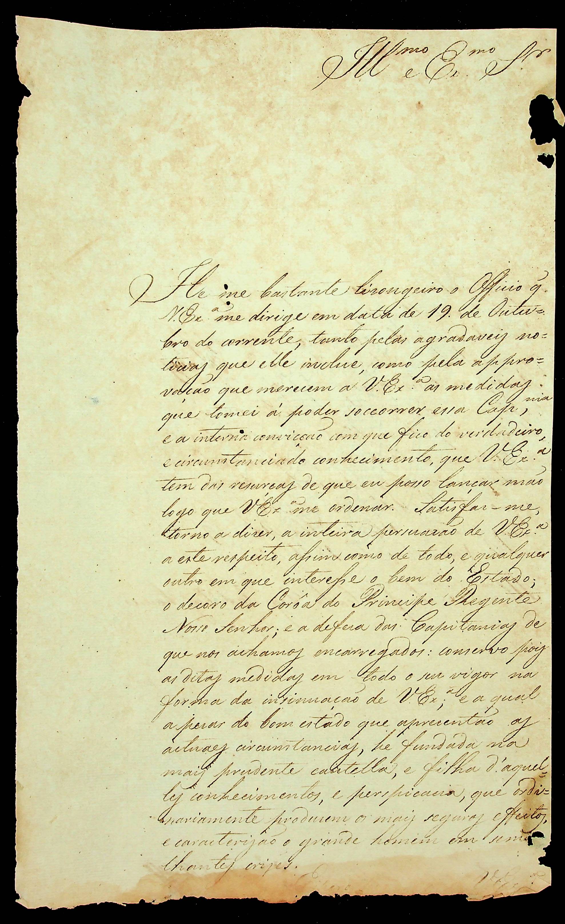 CARTA do [Governador e Capitão-General da Capitania de Goiás] Fernando Delgado Freire de Castilho ao [Governador e Capitão-General da Capitania de Mato Grosso] João Carlos Augusto D’Oeynhausen e Gravemberg.