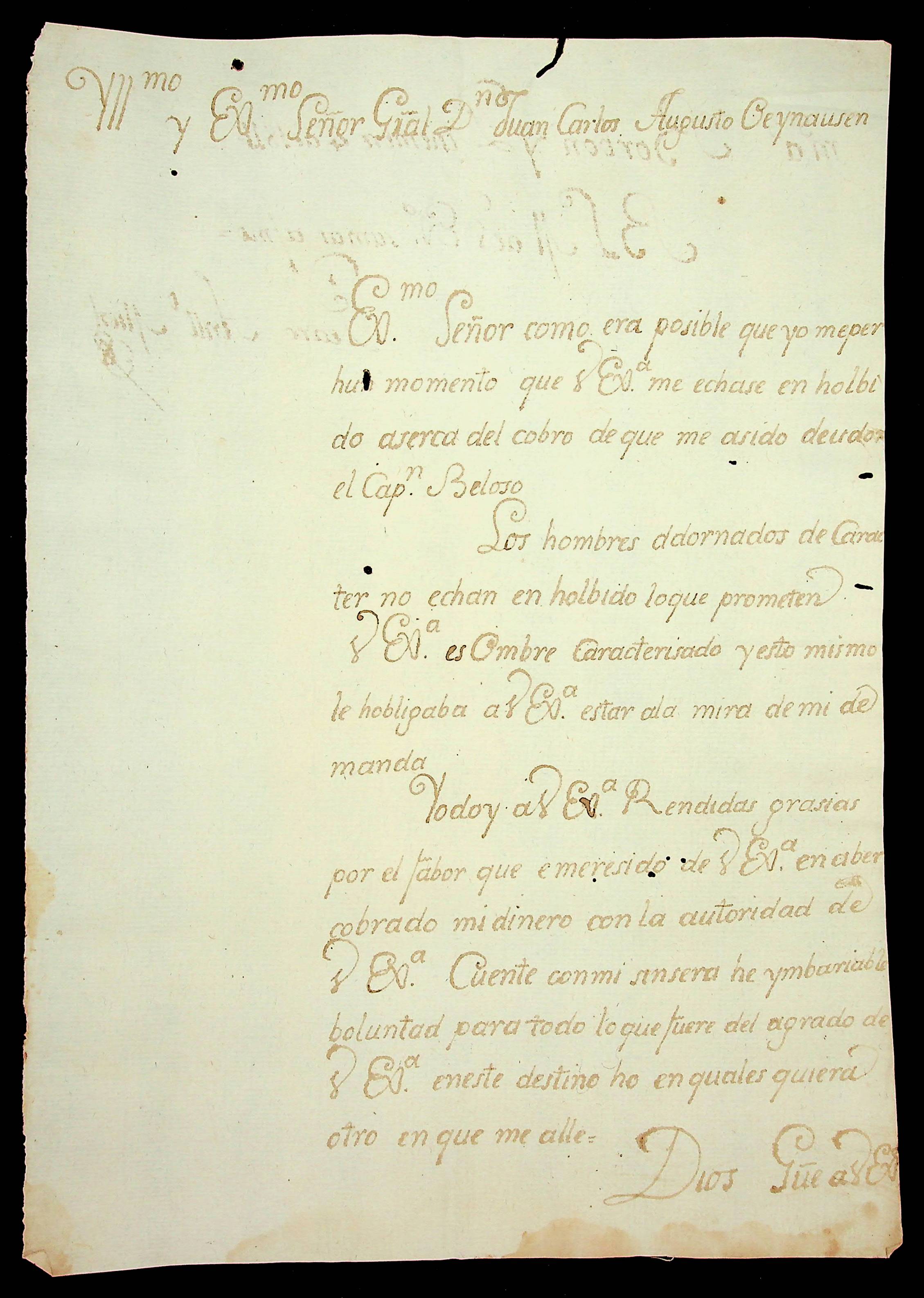 CARTA de Pedro Antônio Mier ao [Governador e Capitão-General da Capitania de Mato Grosso] João Carlos Augusto D’Oeynhausen e Gravemberg.